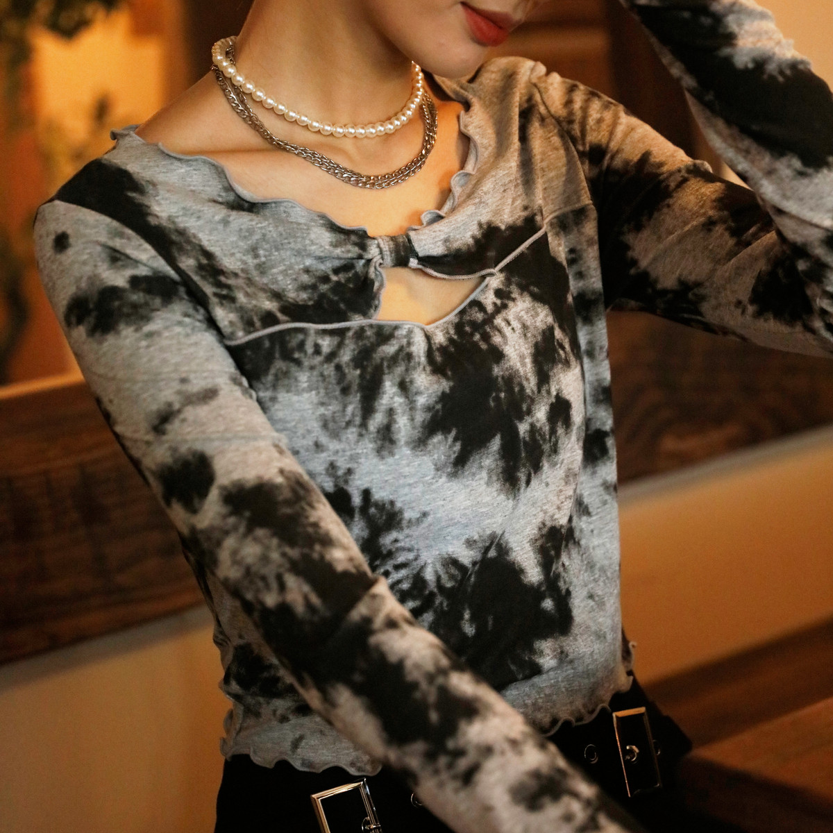 📚 西町村屋甜酷木耳边蝴蝶结打底衫秋季新款复古长袖小衫AC8105005