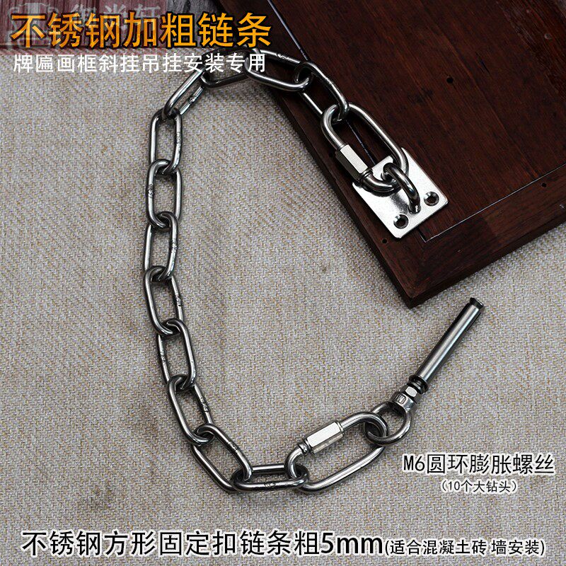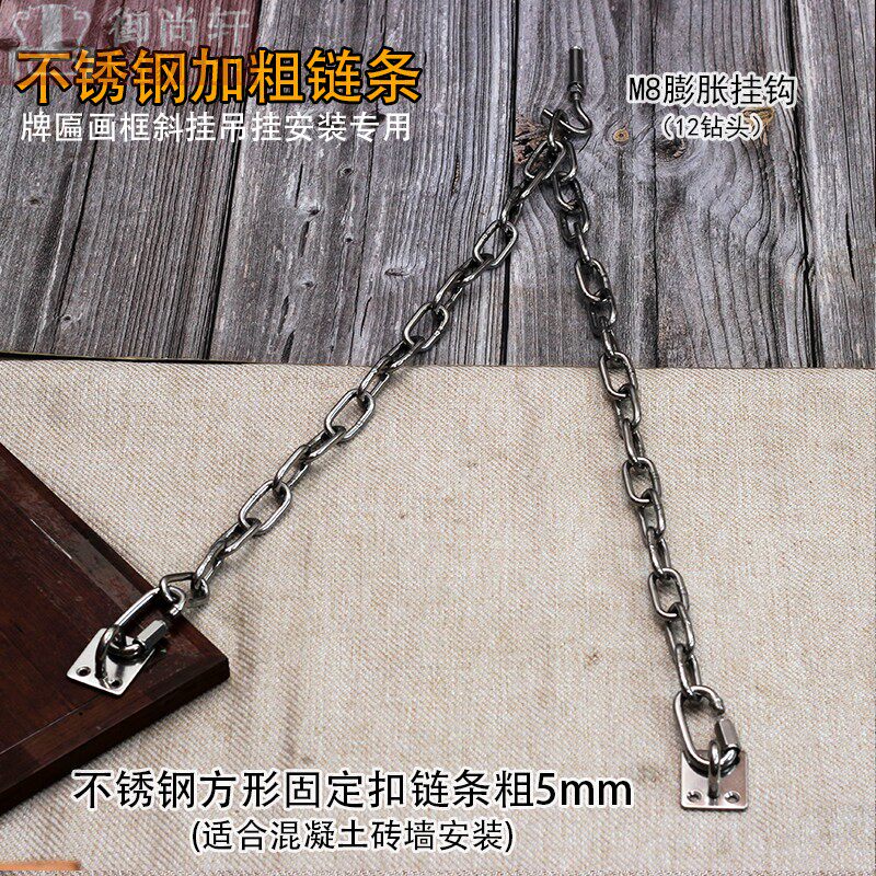 📚 不锈钢加粗环链牌匾斜挂连接链条实木门头招牌匾额画框装饰固定托