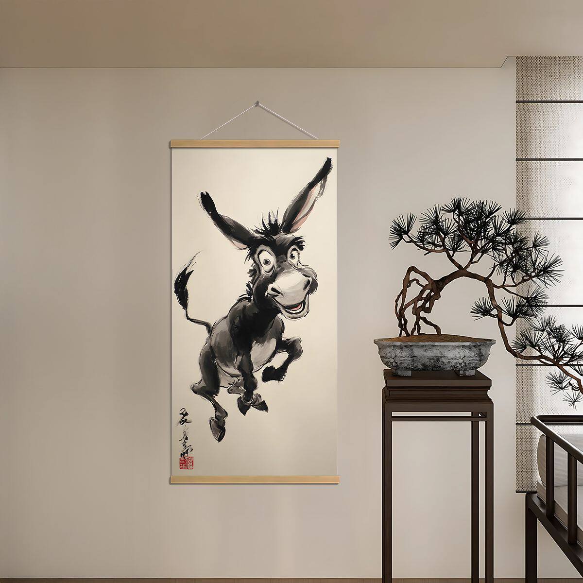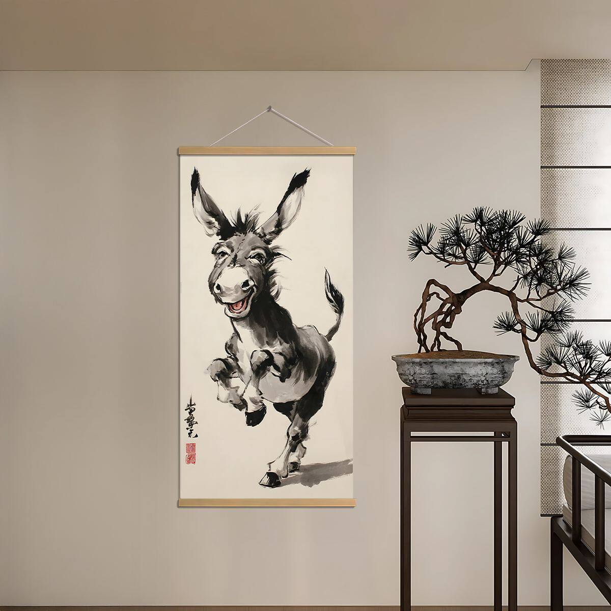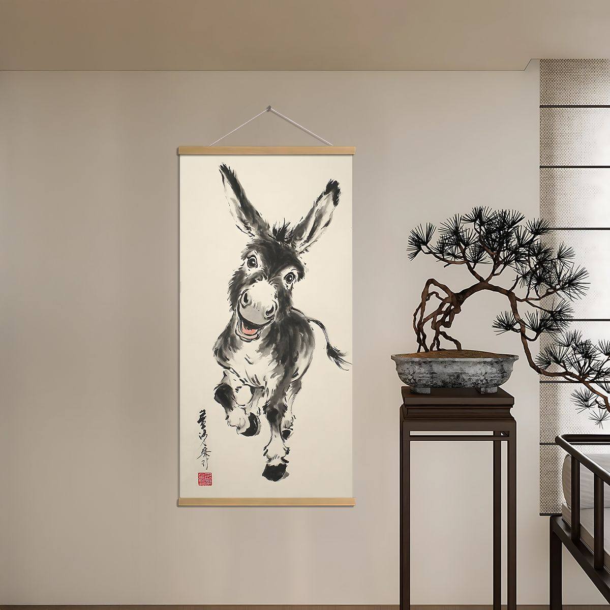 📚 新款中式水墨风卷轴水墨驴挂画玄关客厅搞笑创意动物装饰画办公室