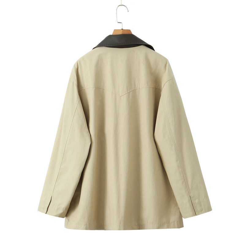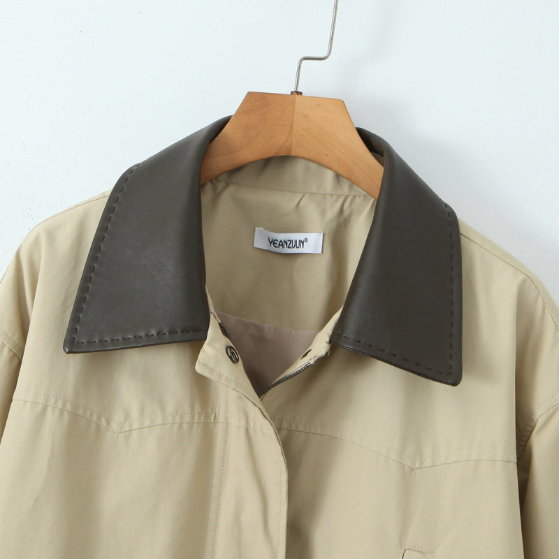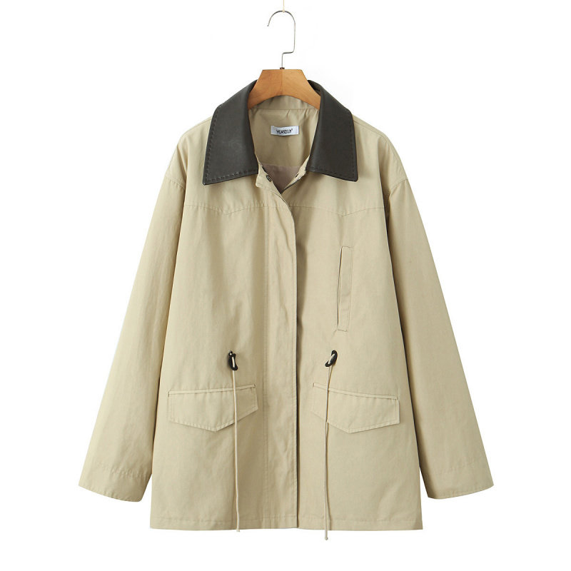 📚 跨境欧美女装速卖通爆款时尚复古休闲拼色皮领风衣外套
