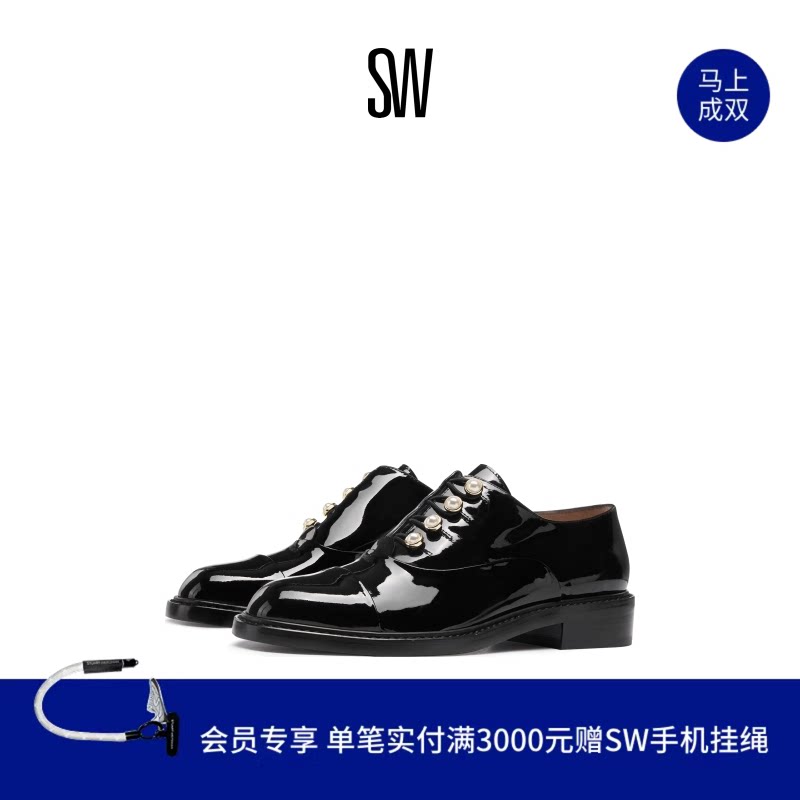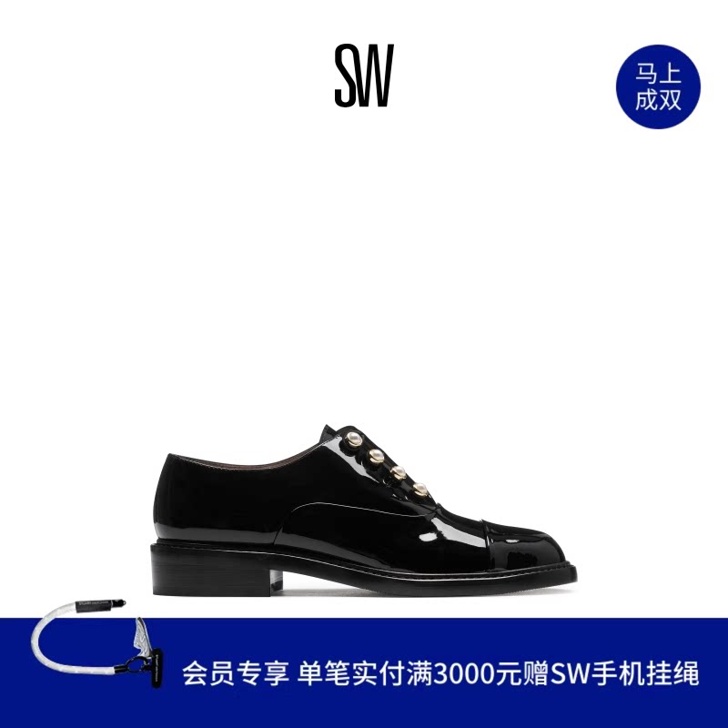 📚 Stuart Weitzman/SW MRSPATS 珍珠装饰粗跟乐福鞋小皮鞋女德比鞋