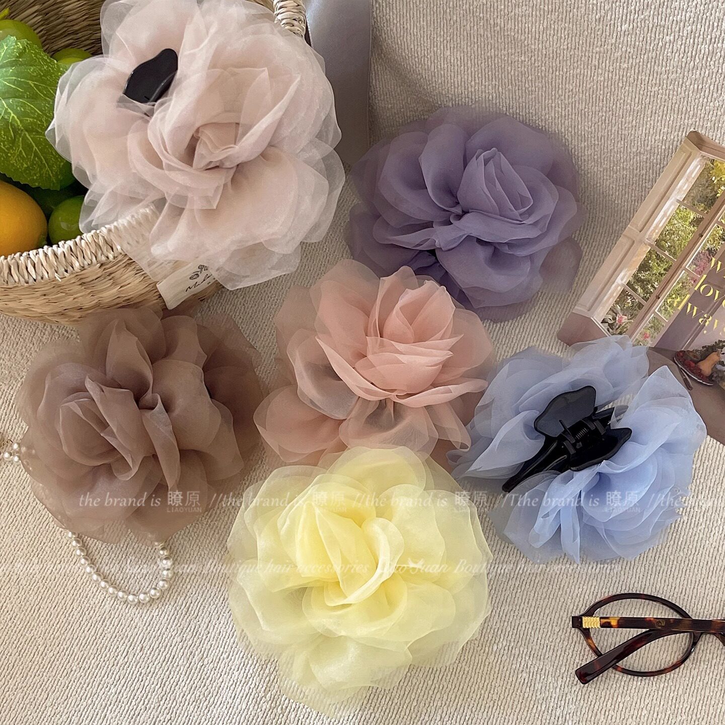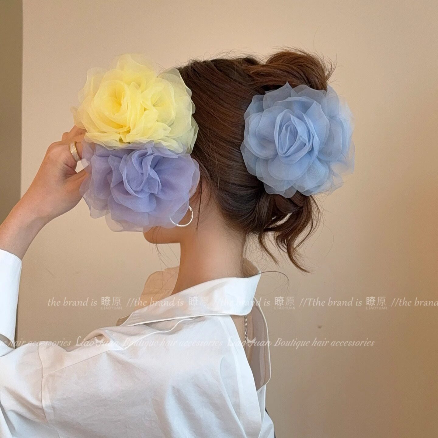 📚 超仙花大朵盘发抓夹女气质发夹后脑勺鲨鱼夹子发夹子发卡子头饰品