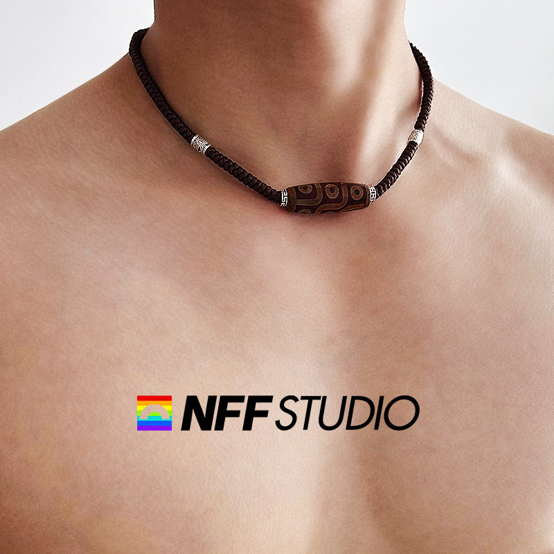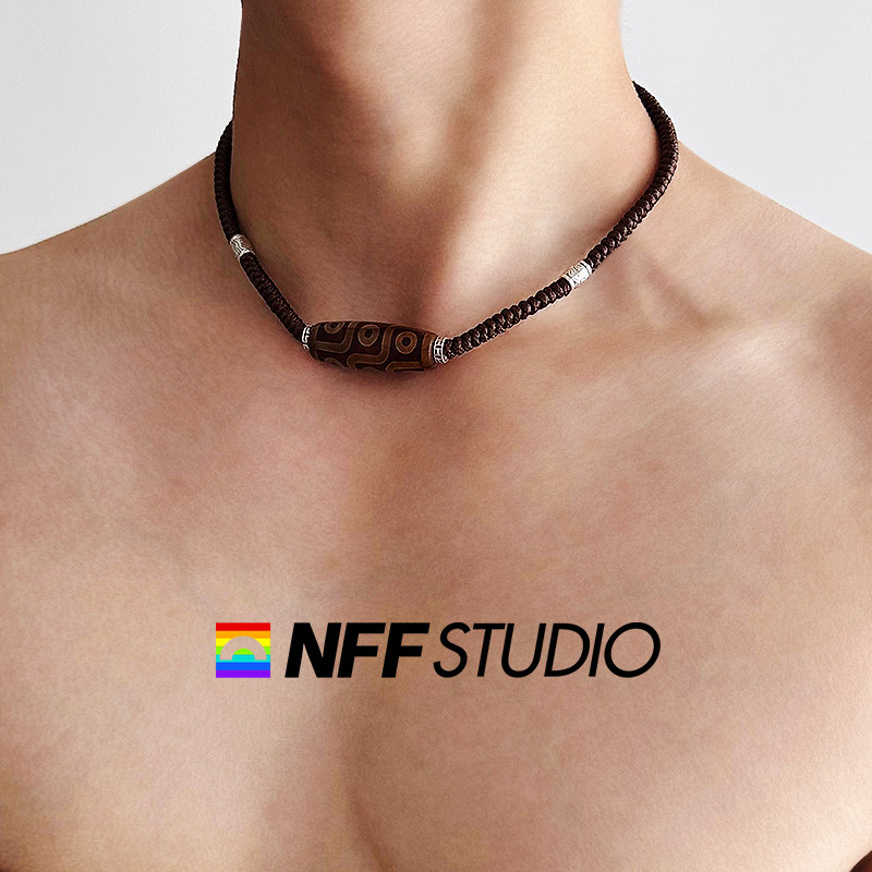 📚 NFF民族风玛瑙陶瓷天珠项链男粗编织款松紧绳小众设计嘻哈锁骨链