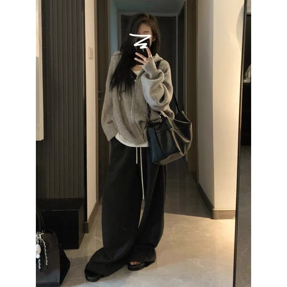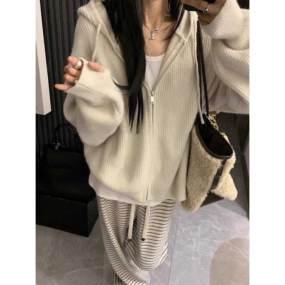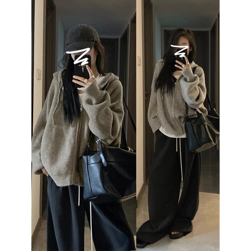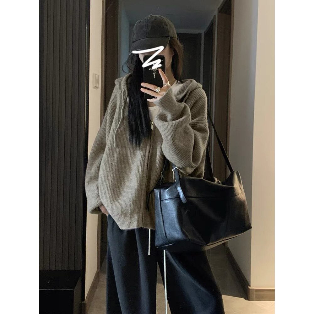 📚 实价#羊驼绒#韩系连帽拉链毛衣女秋冬季慵懒风高级感针织开衫