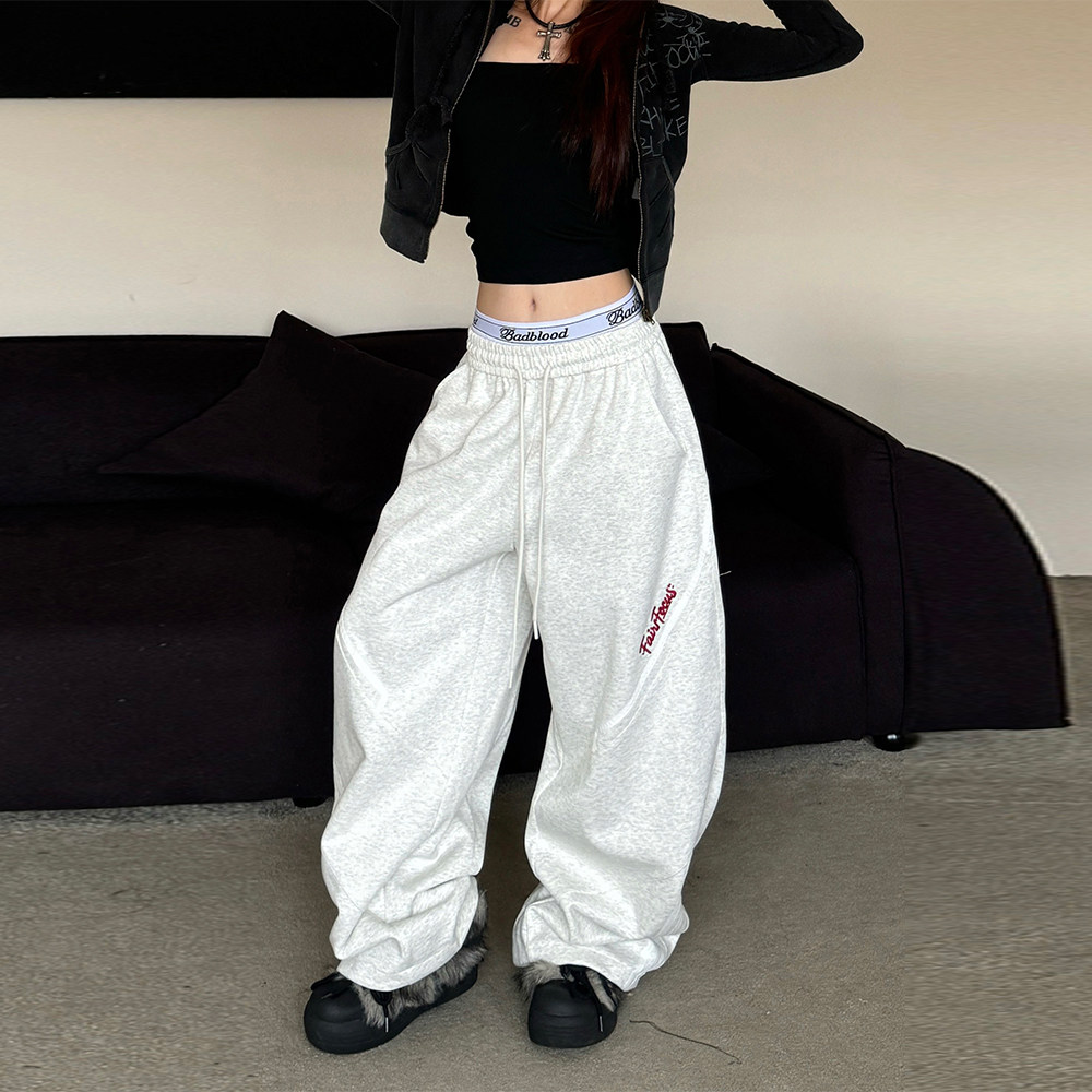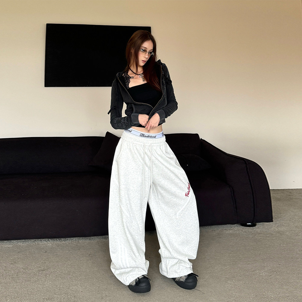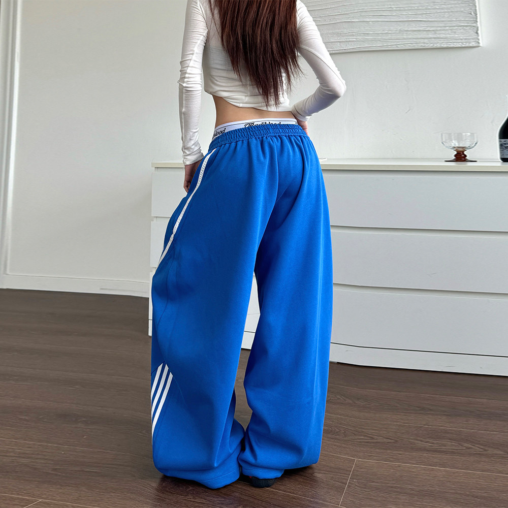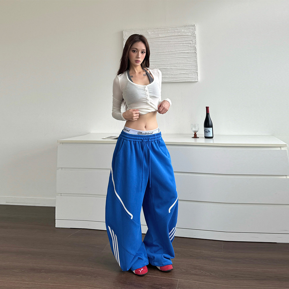 📚 辣到中暑美式街头辣妹嘻哈街舞条纹拼接撞色宽松卫裤阔腿休闲裤