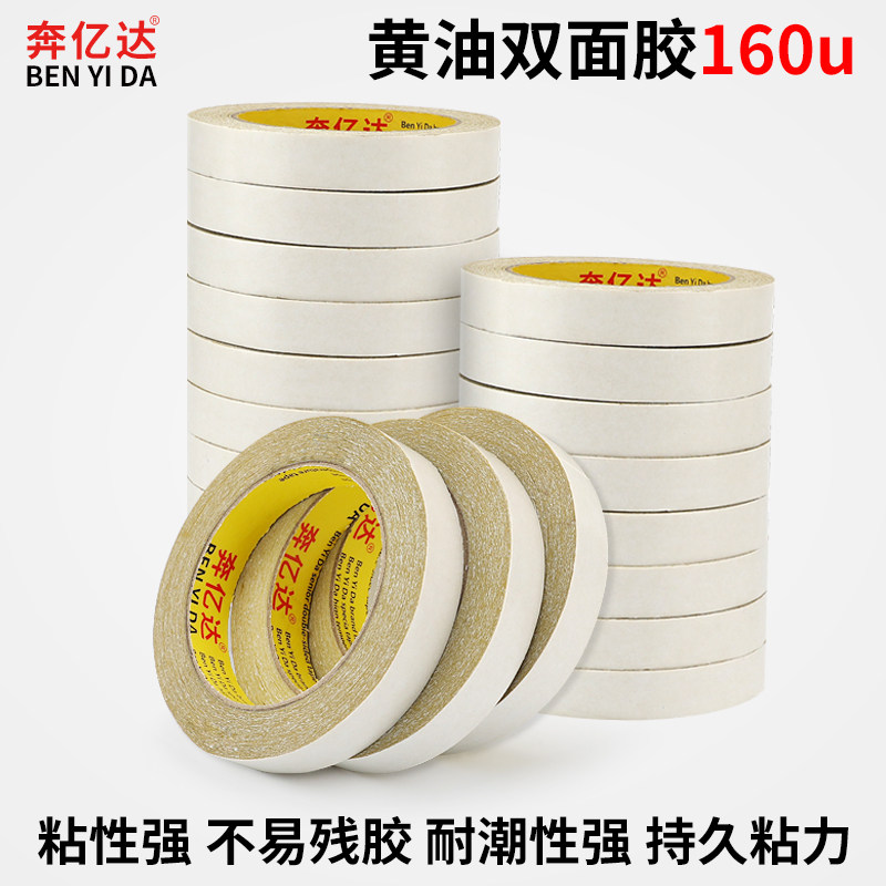 📚 奔亿达黄色黄油双面胶高粘度160U厚超粘强力固定黄胶绣花双面胶电子工业图文印刷专用办公手工超薄高粘胶布