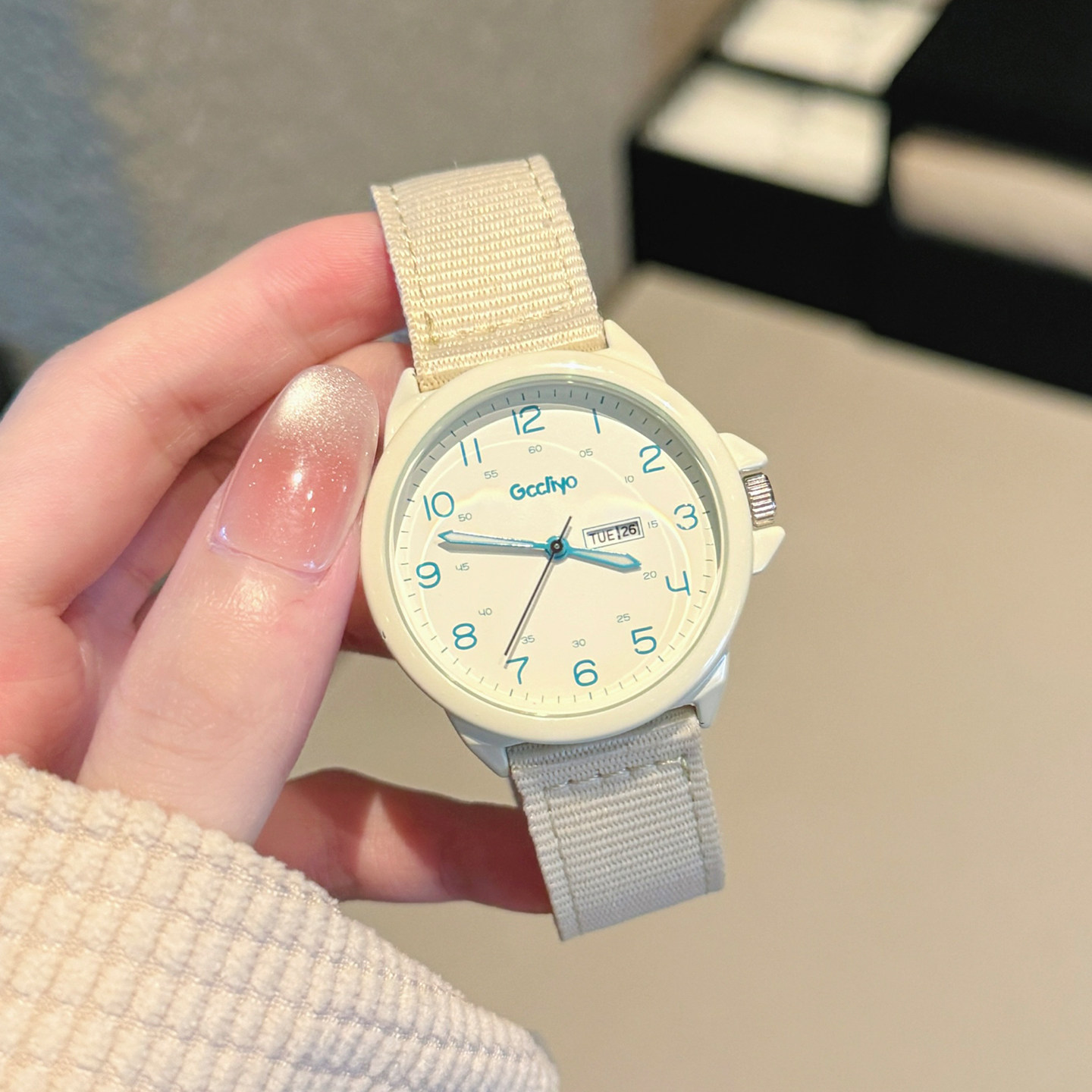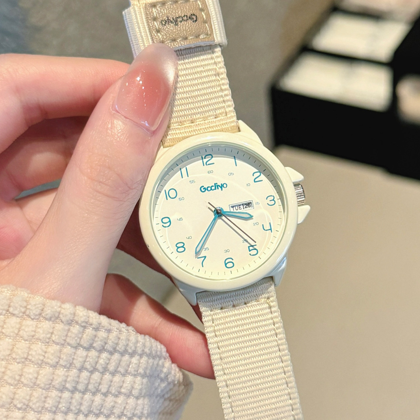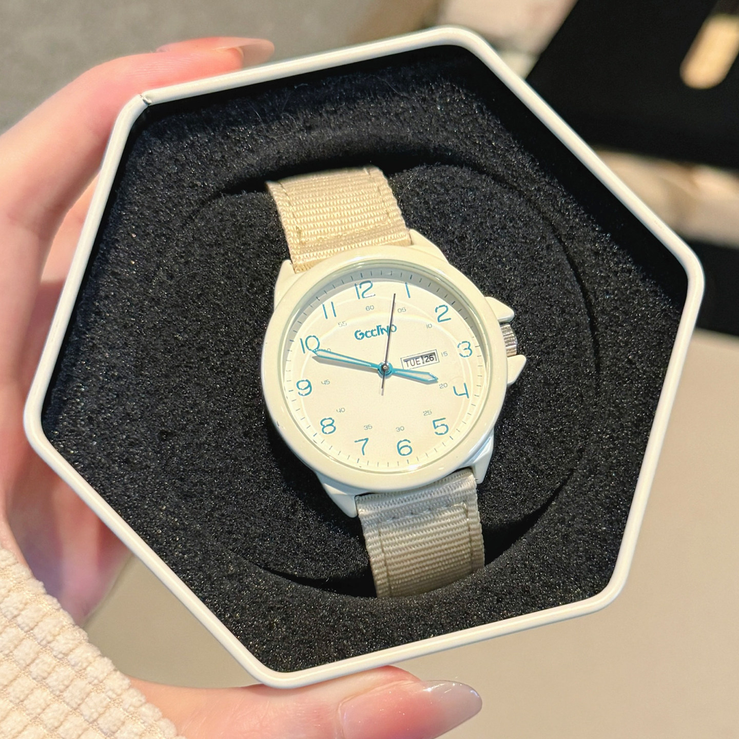 📚 手表女学生小众初高中学院风防水考试专用日历星期情侣手表男月相
