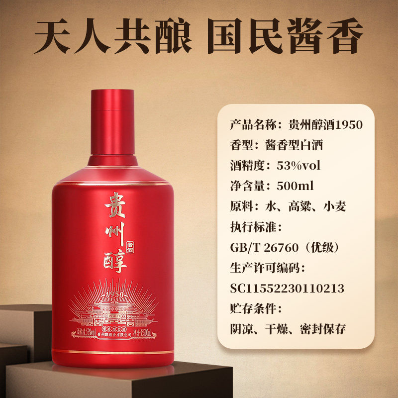 📚 贵州醇 1950 酱香型53度白酒 高度白酒 婚宴喜酒 节日送礼