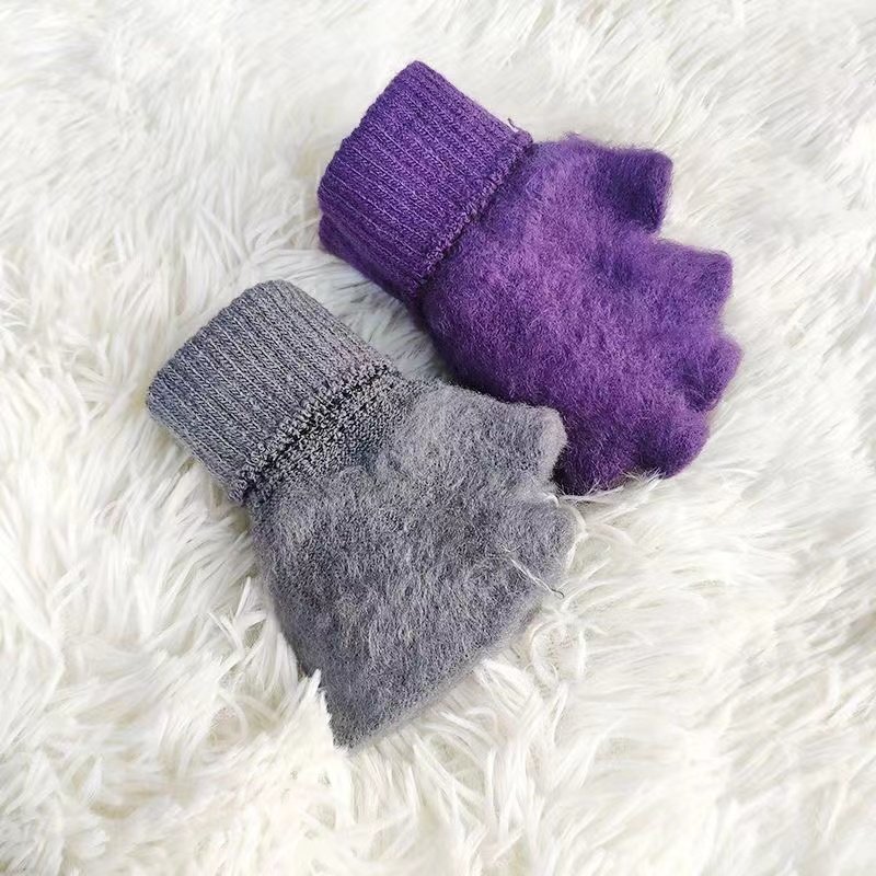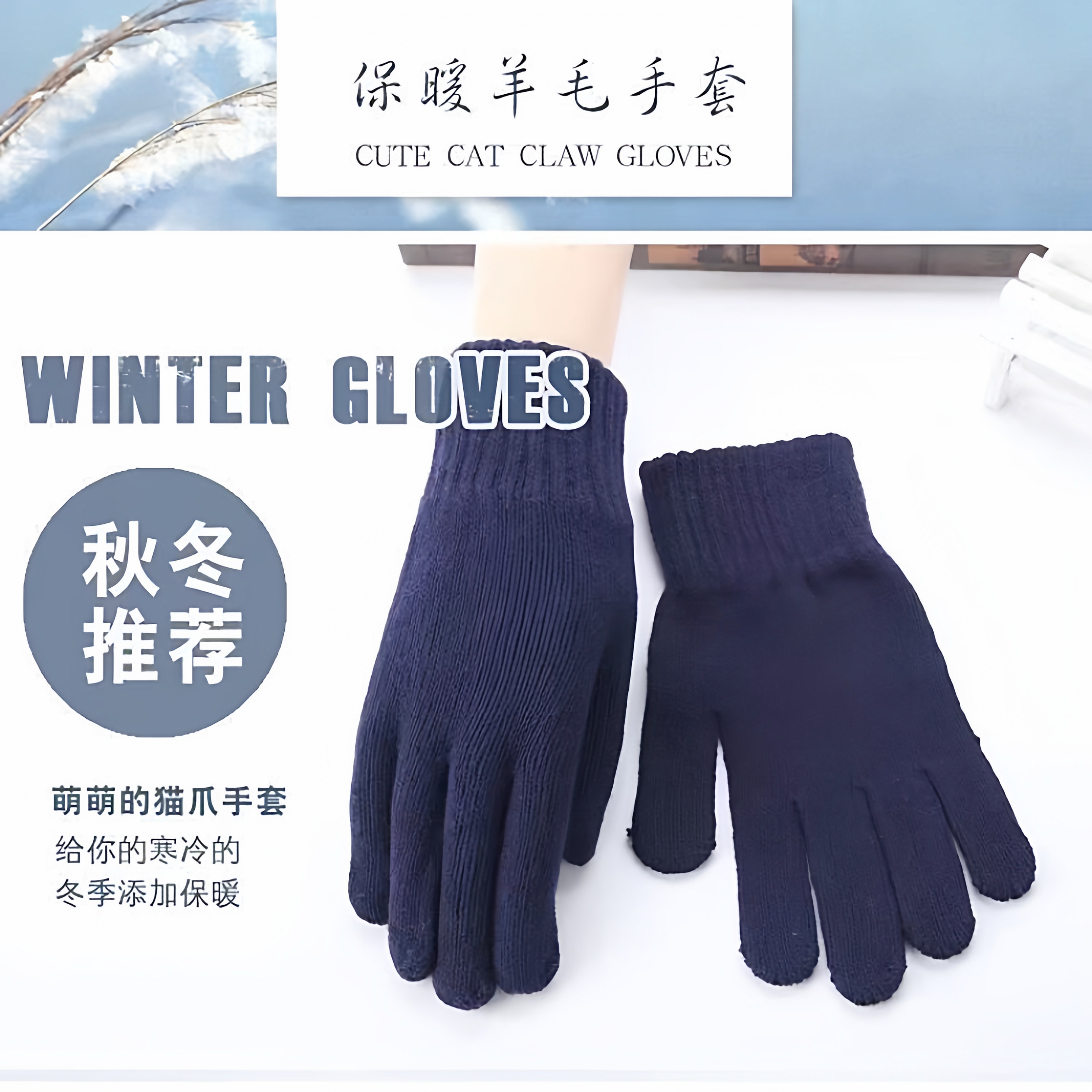 📚 纯色针织手套女保暖手套秋冬季加绒弹力毛线分指电动车保暖手套