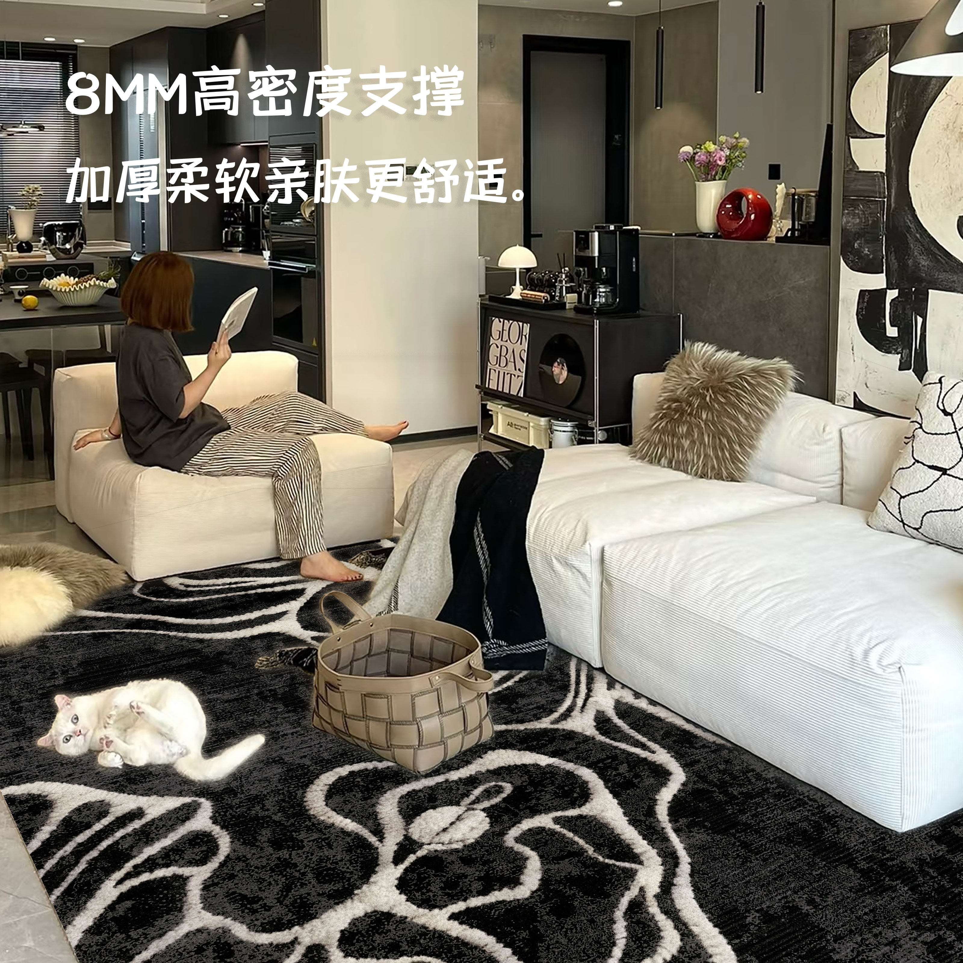 📚 现代简约客厅地毯黑色抽象花纹轻奢高级感沙发茶几毯家用地垫