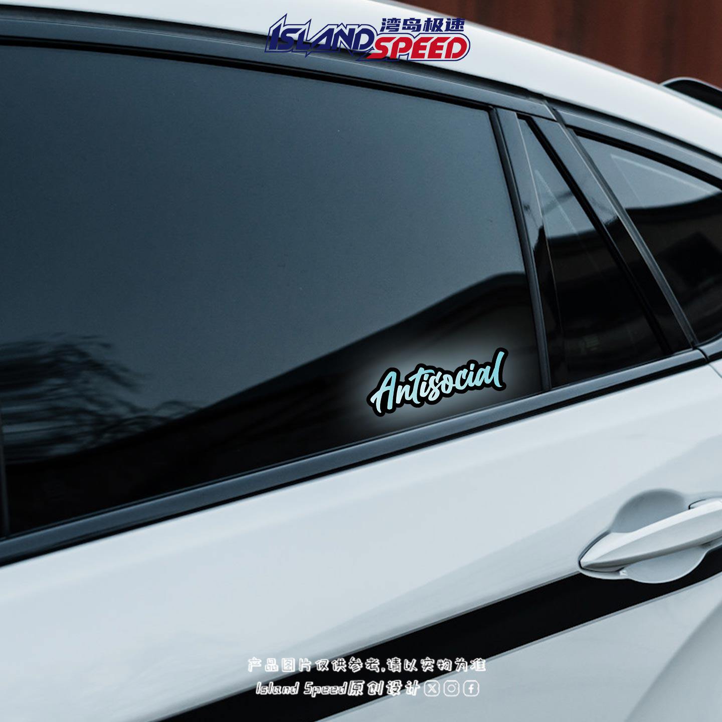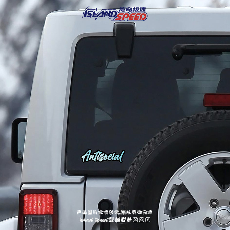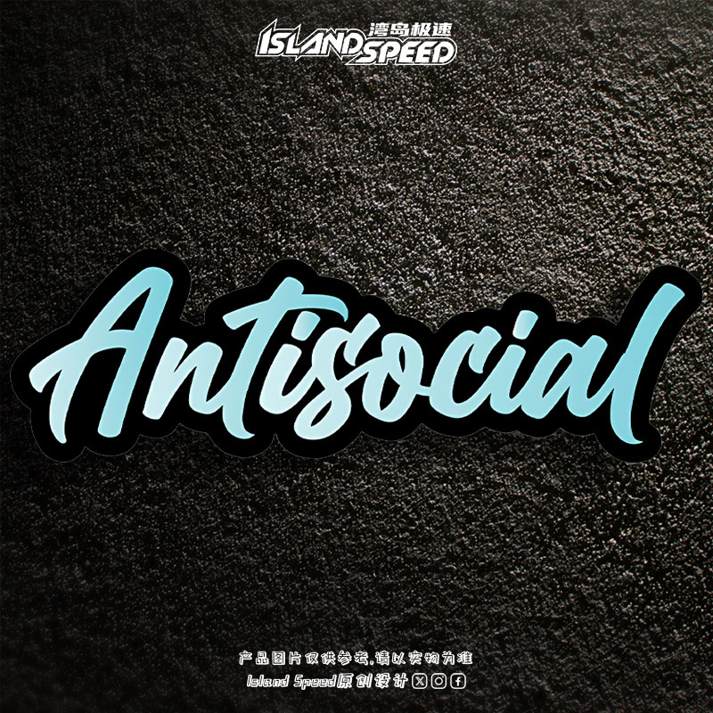 📚 Antisocial反社会俱乐部蓝色英文汽车贴纸反光磁吸个性设计车饰贴