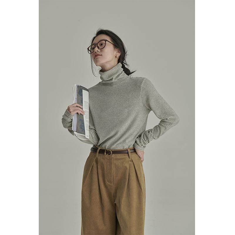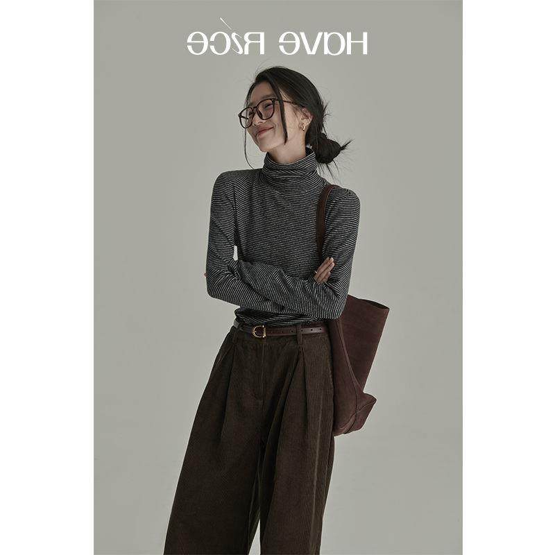 📚 重现经典!内搭软糯糯德绒加绒长袖高领条纹针织保暖打底衫上衣女