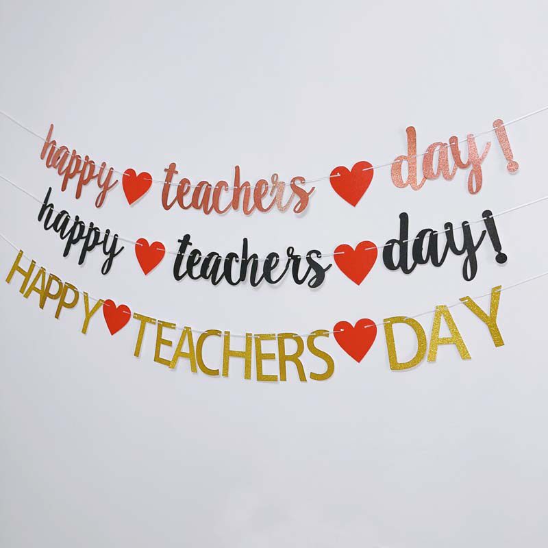 📚 教师节装饰拉旗早教培训班布置happy teacher's day字母彩旗道具