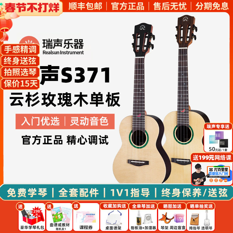 📚 白熊音乐Realsun瑞声西瓜琴SC371尤克里里23寸初学云杉玫瑰木面单