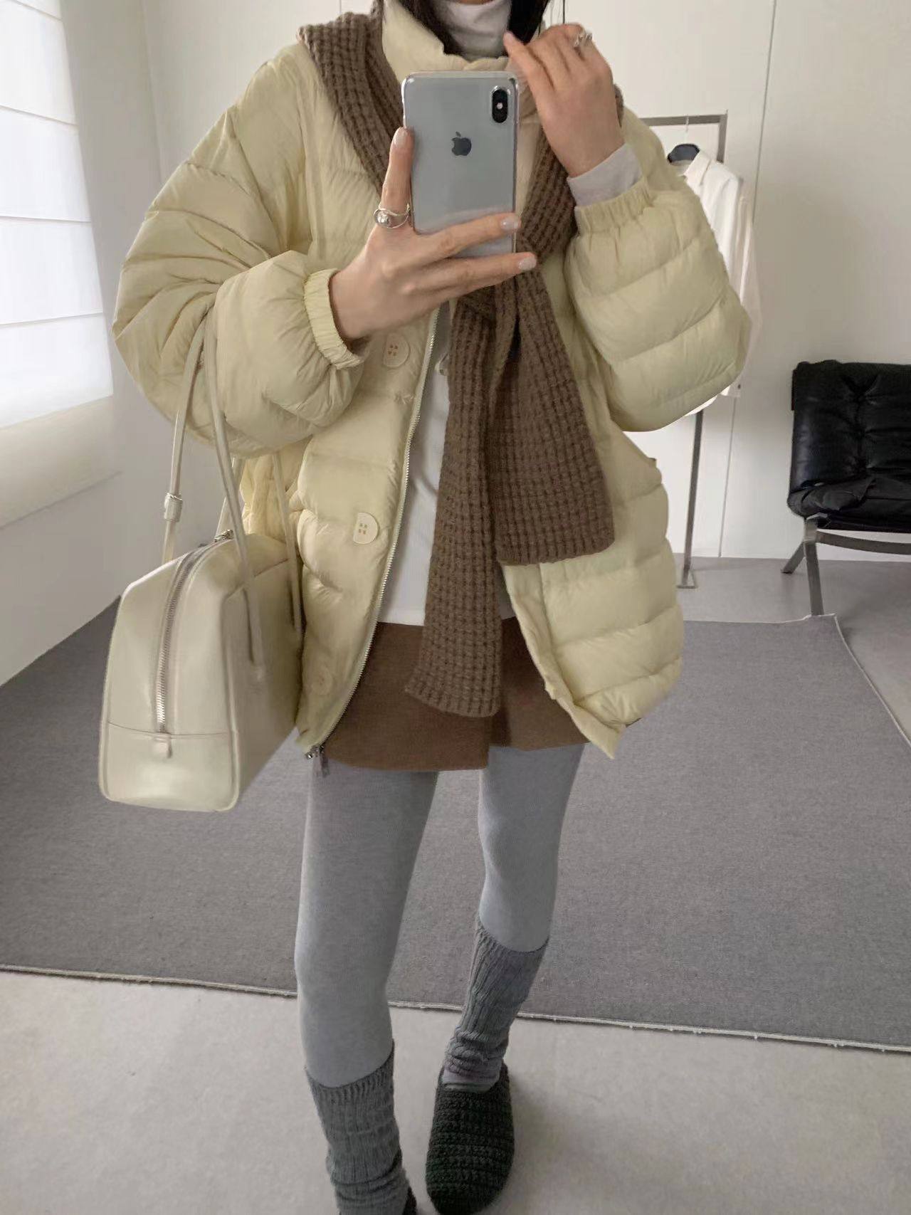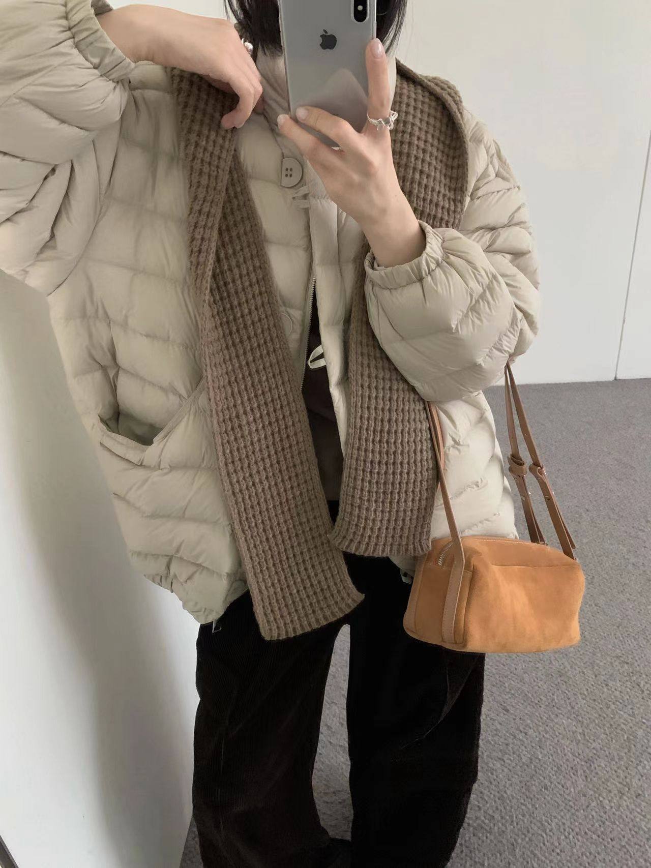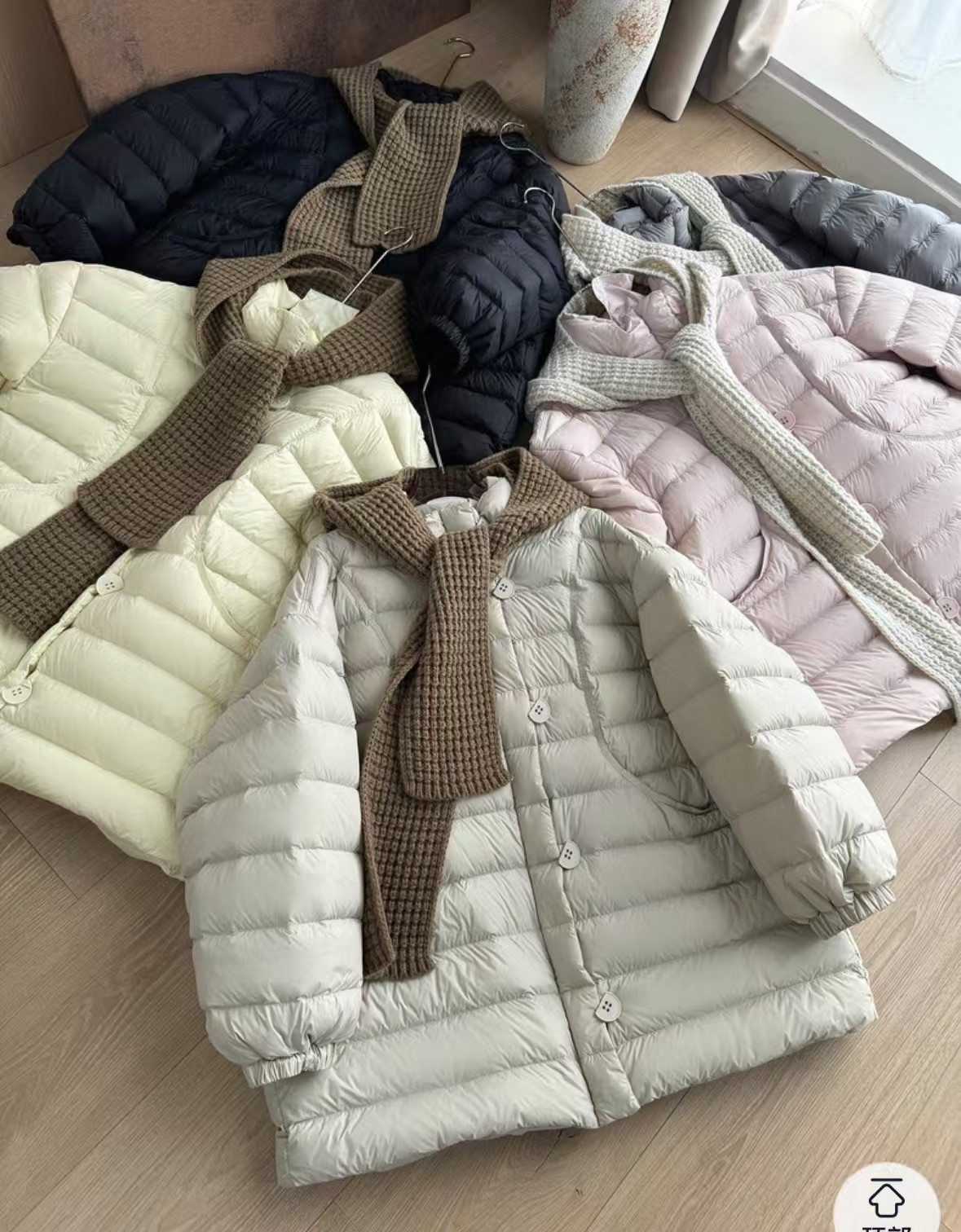 📚 2025新款立领可拆卸披肩针织围巾女中长款排骨白鸭绒90高端羽绒服