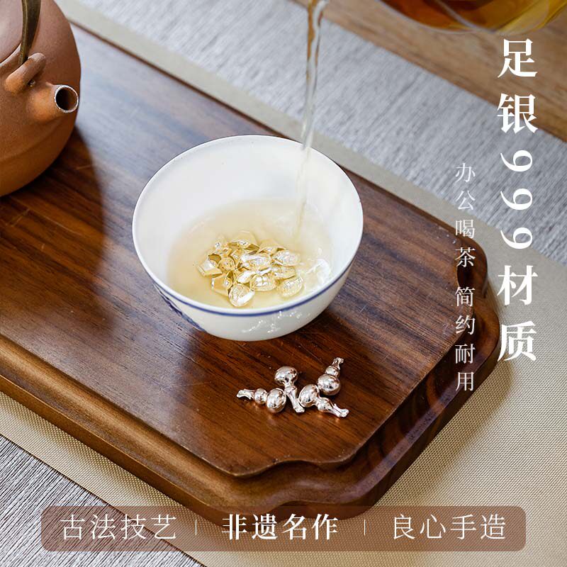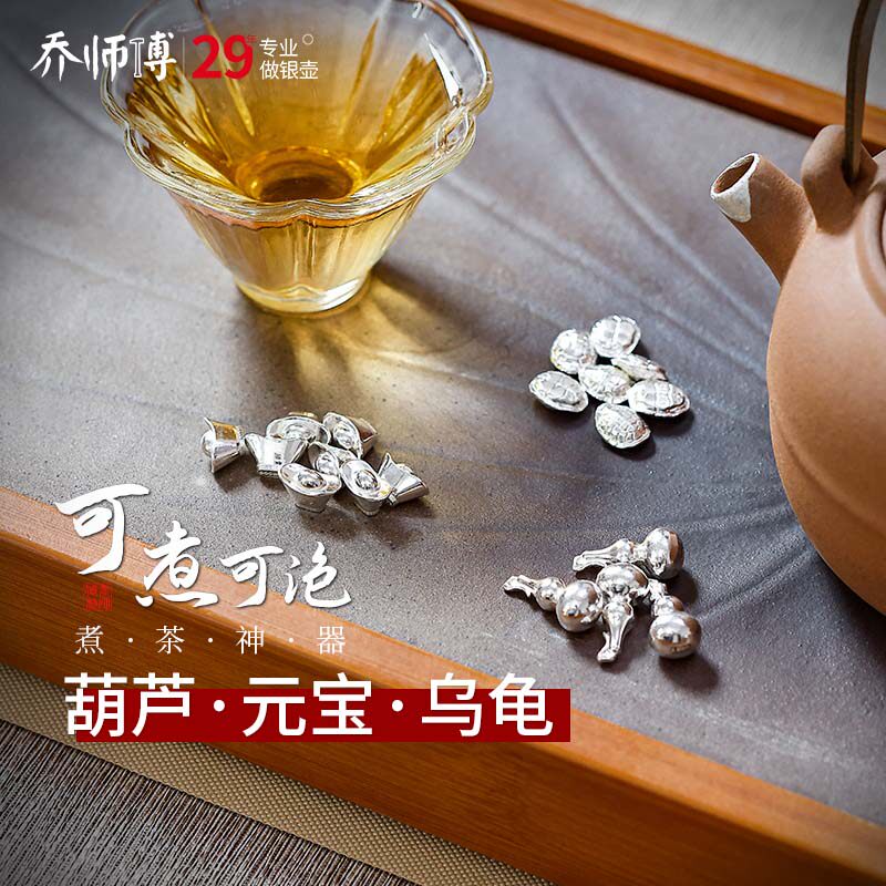 📚 银葫芦S999纯银泡茶神器投资实心银元宝乌龟银锭白银净化煮水泡茶