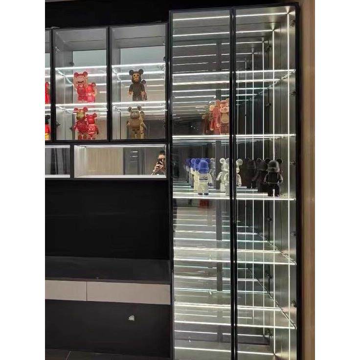 📚 定制极简铝合金钢化深渊镜千层镜玻璃柜门酒柜单向透视玻璃展示柜