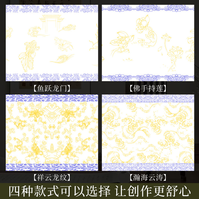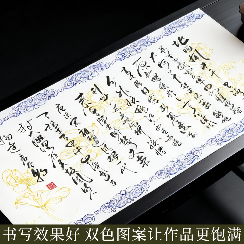 📚 加厚双色描金宣长卷纸70克特厚型半生半熟青瓷蓝色长卷毛笔字书法练习创作用小楷书行书隶书创作装裱书画纸