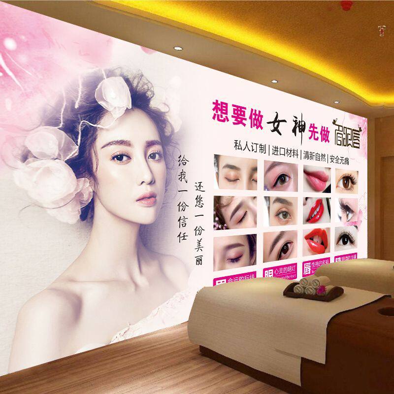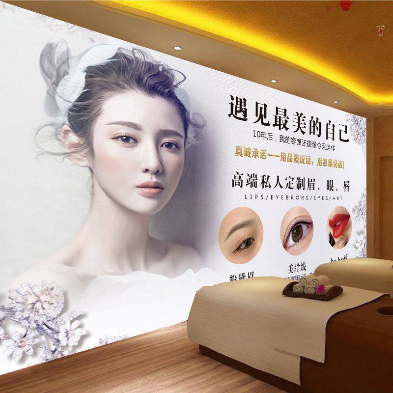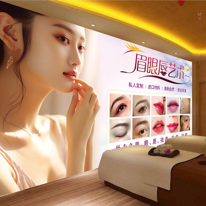 📚 韩式半永久眉眼唇海报广告美甲美睫纹绣图片美容院背景墙贴画壁画