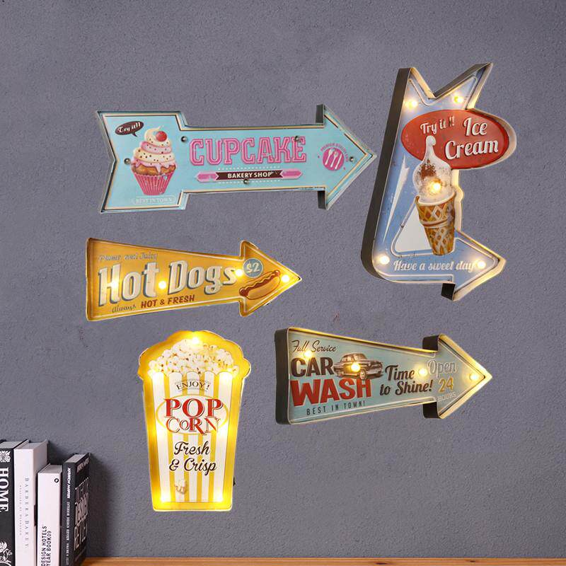 📚 美式复古铁艺壁饰灯牌LED灯指示牌箭头指示牌酒吧咖啡店铺导向牌