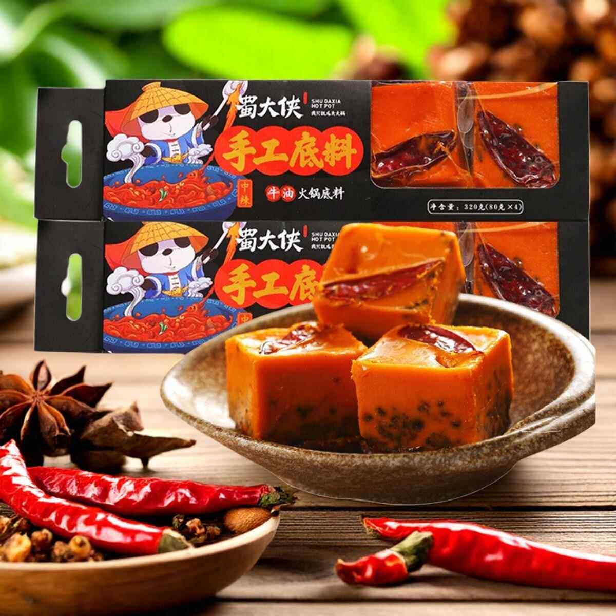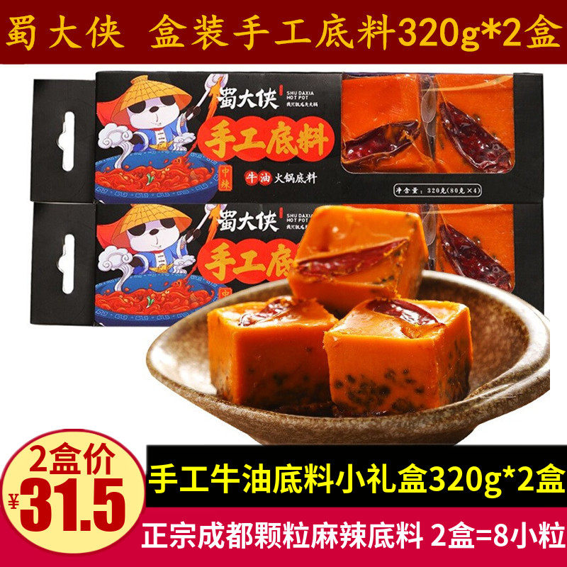 📚 蜀大侠手工牛油火锅底料320g*2盒四川特产礼盒装麻辣料小颗粒包装
