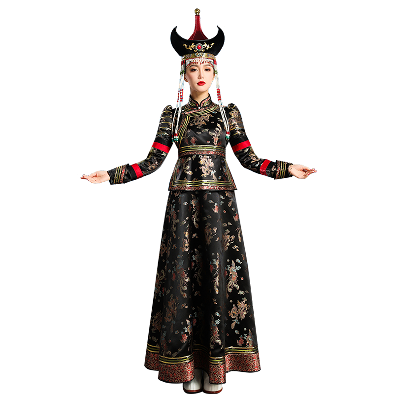 👗今日入手了一件神秘又高贵的连衣裙,让我彻底被种草了!它就是那款专为民族舞蹈演出、摄影、礼仪和婚礼准备的神秘女蒙古袍黑色连衣裙!