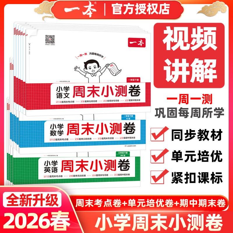 📚 2026春一本小学周末小测卷语文数学英语一二三四五六年级下册试卷测试卷全套人教版北师版苏教版江苏专用上册同步单元期中期末考卷