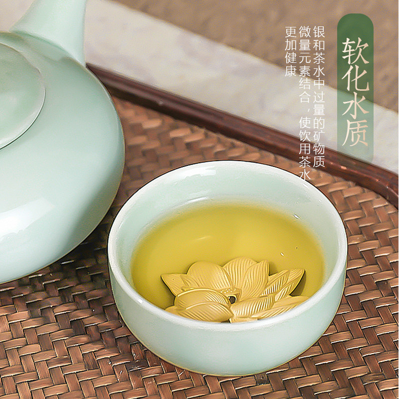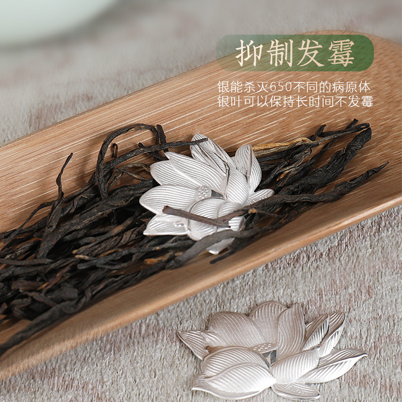 📚 银莲花 老茶纯银999泡茶银叶子泡茶伴侣银茶叶茶宠茶配件摆件
