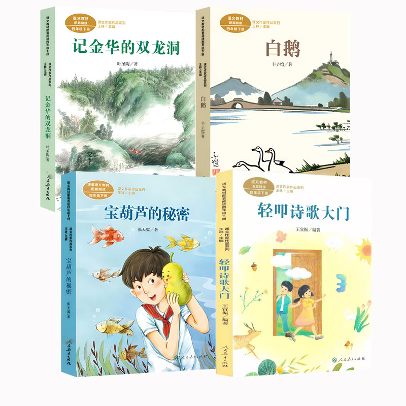 📚 dr人民教育出版社四年级下课外书必读书单老师推荐记金华的双龙洞张天翼宝葫芦的秘密丰子恺白鹅轻叩诗歌大门里的作家人教版同步