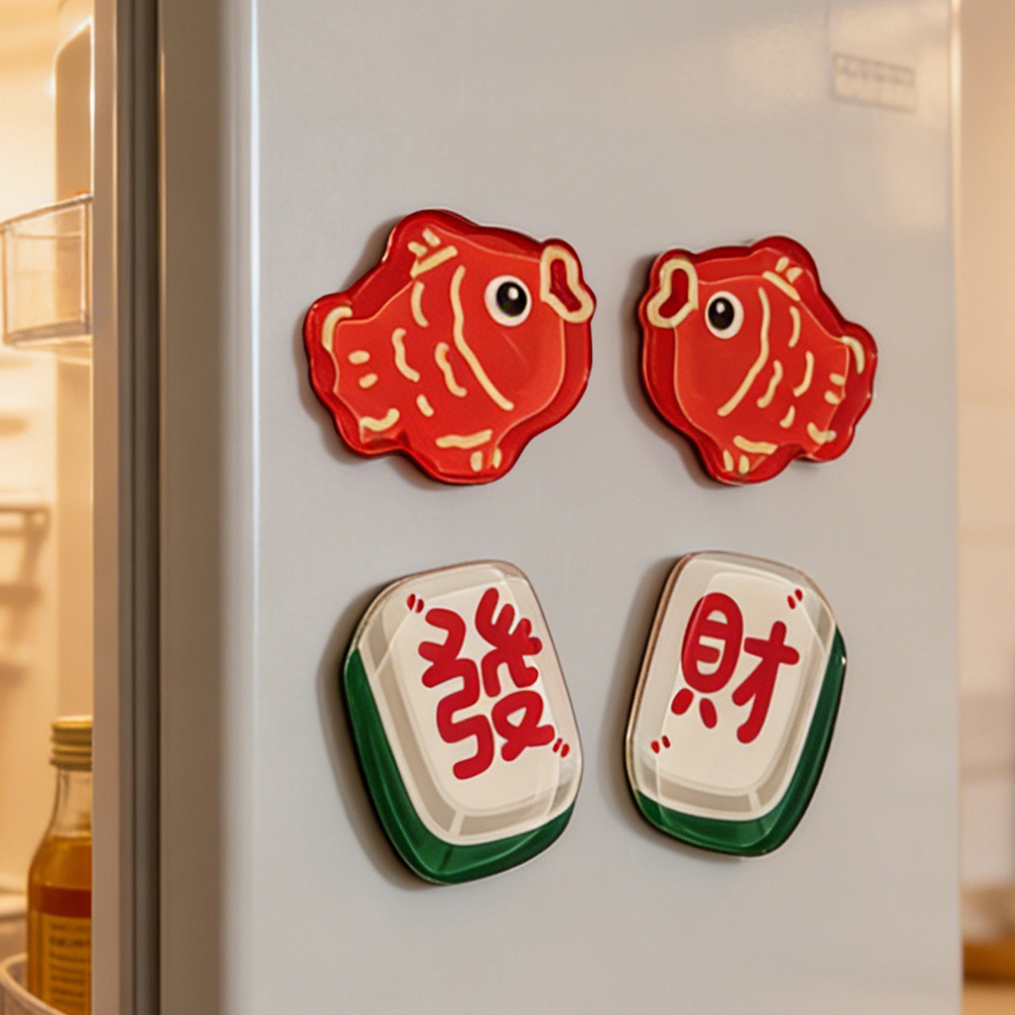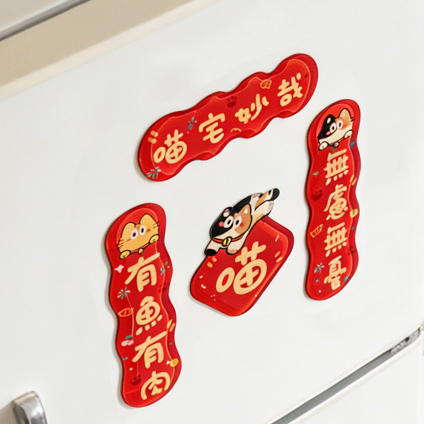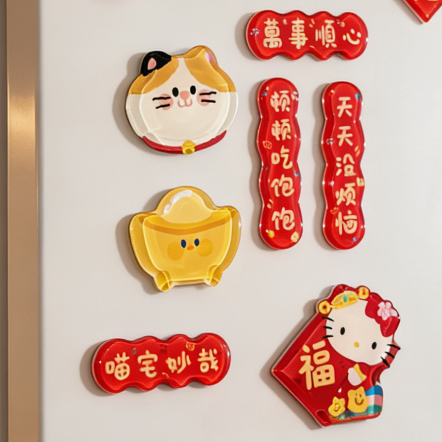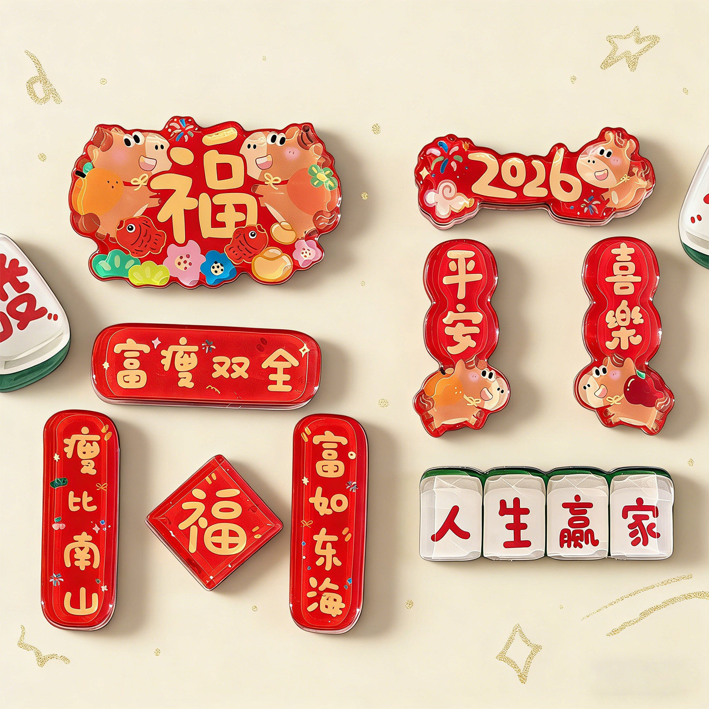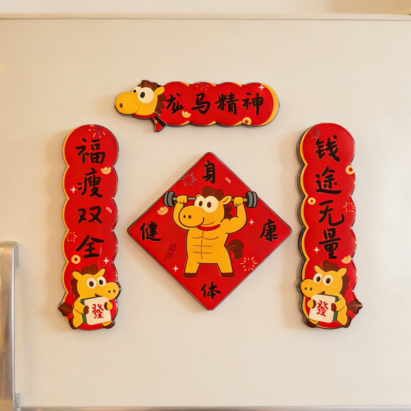📚 nineopen新年可爱小马花朵福字迷你对联磁吸冰箱贴装饰立体装饰贴