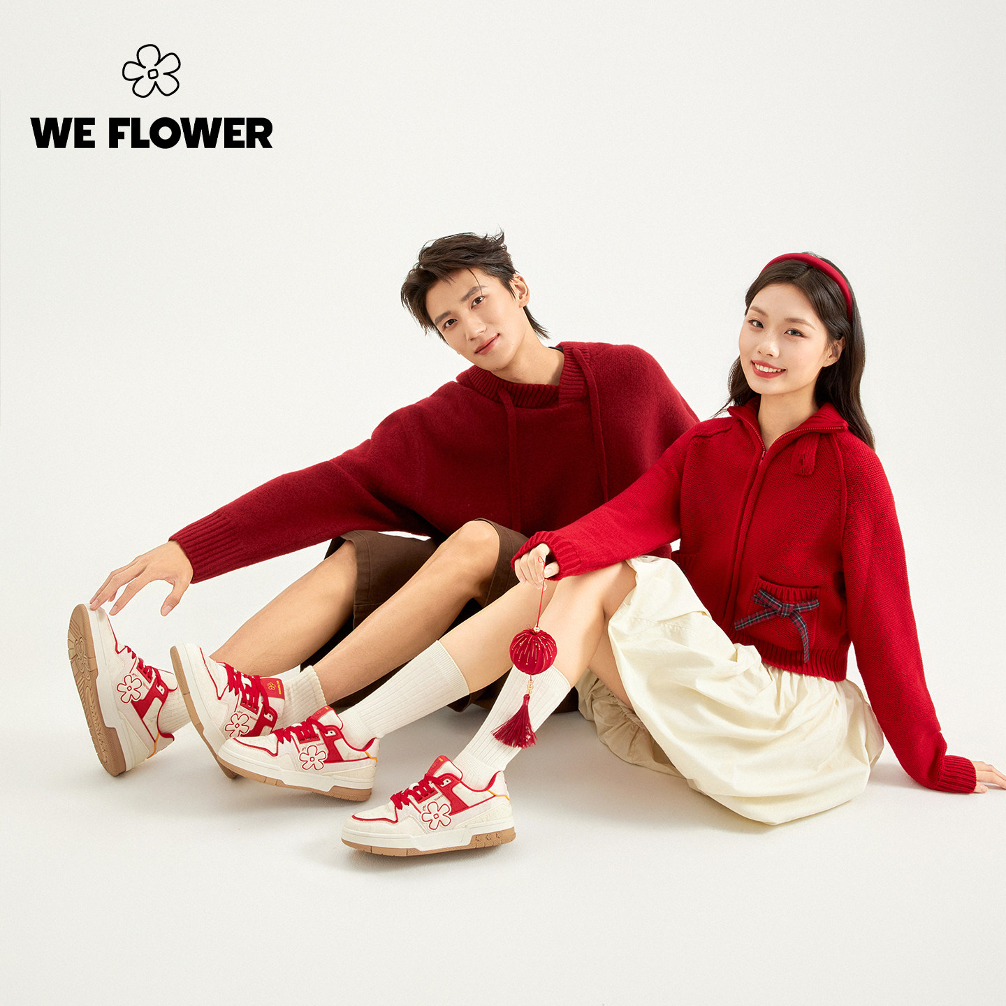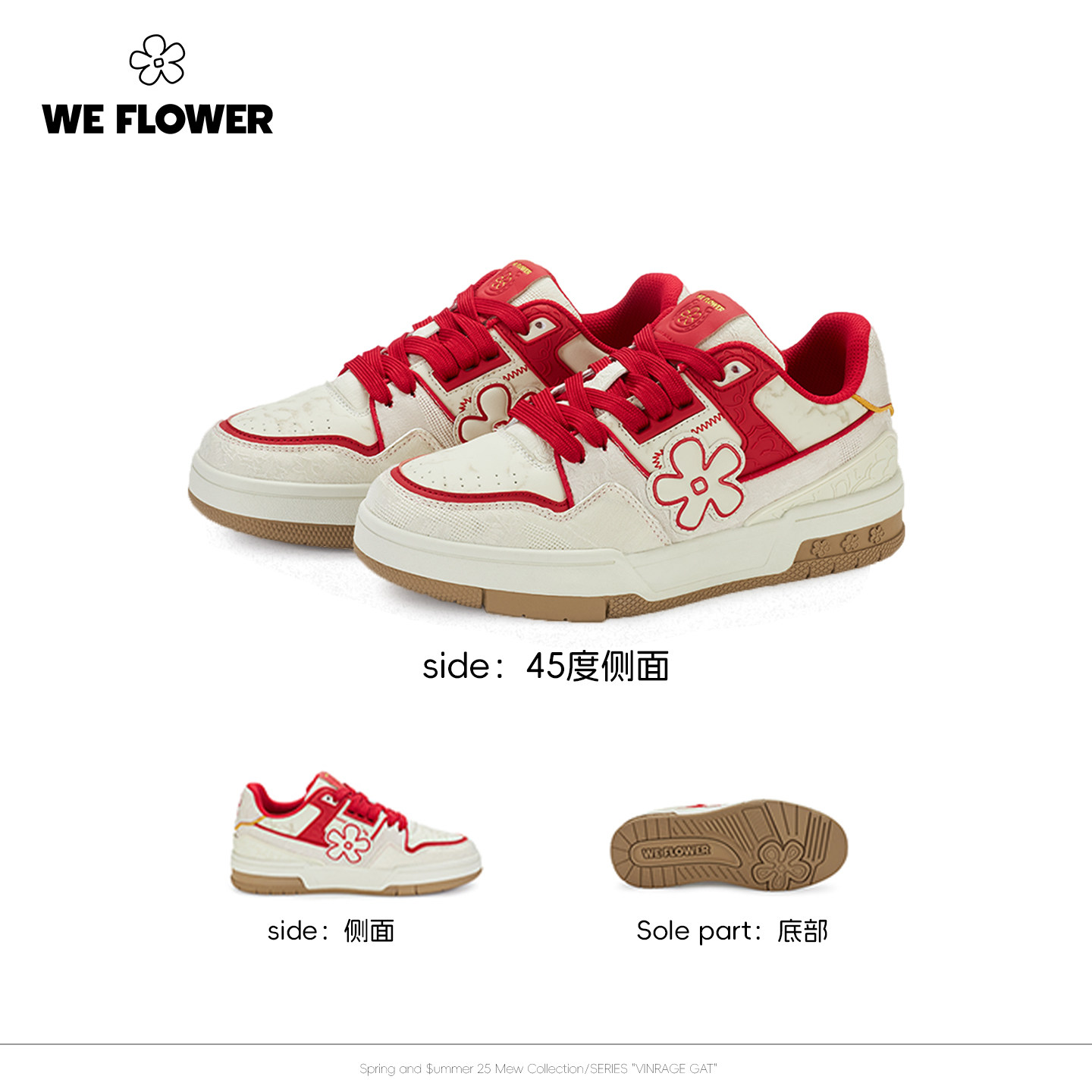 📚 We flower马年限定板鞋国潮多巴胺小花鞋休闲板鞋皮面保暖女鞋