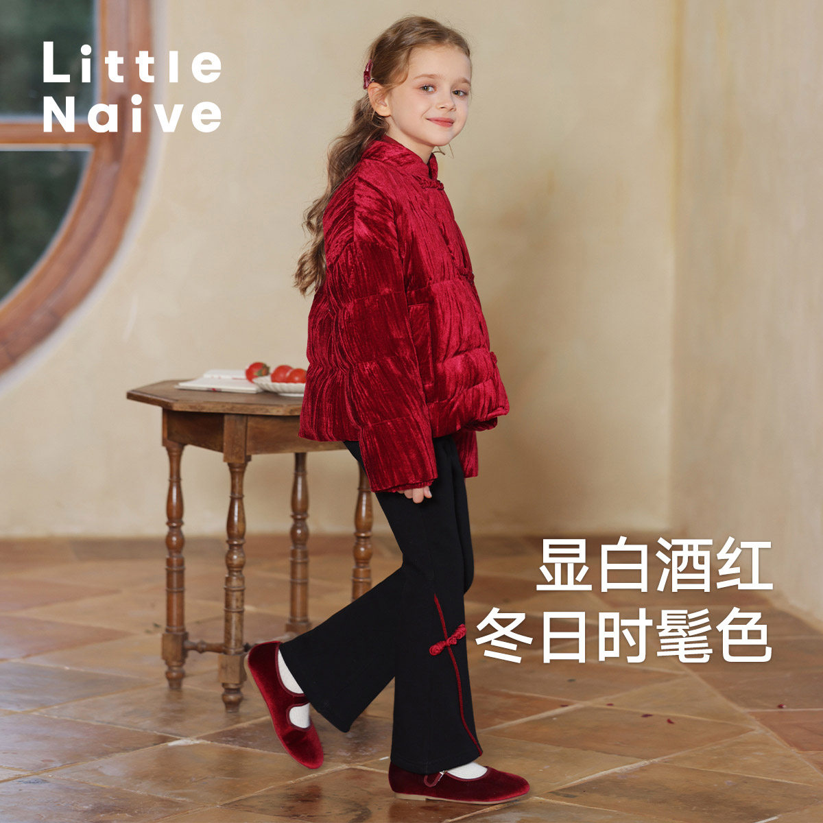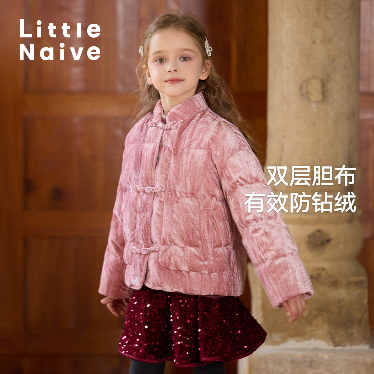 📚 LittleNaive外套女童中式羽绒服冬季保暖儿童丝绒外套红色拜年服