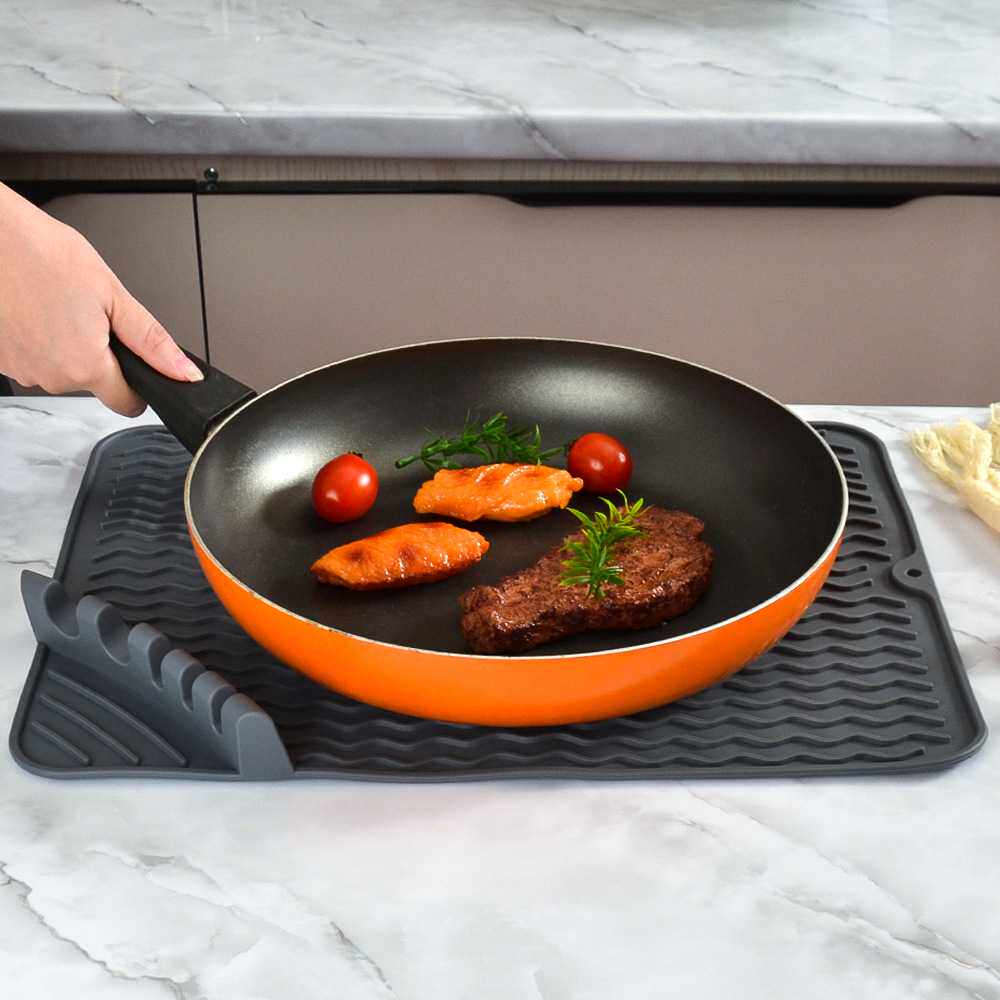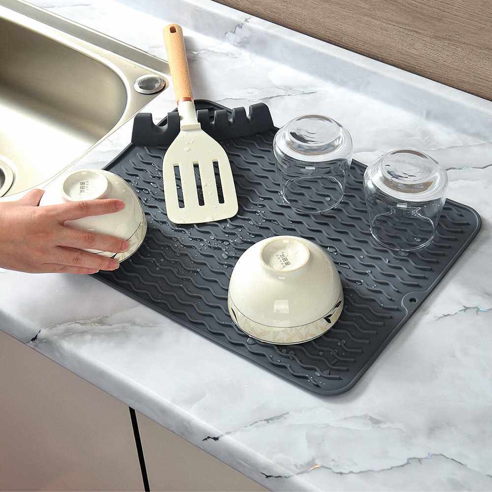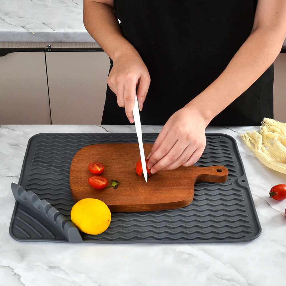 📚 新款带搁置架厨房硅胶沥水垫菜板厨具防滑垫锅垫防烫台面隔热垫