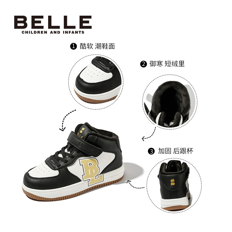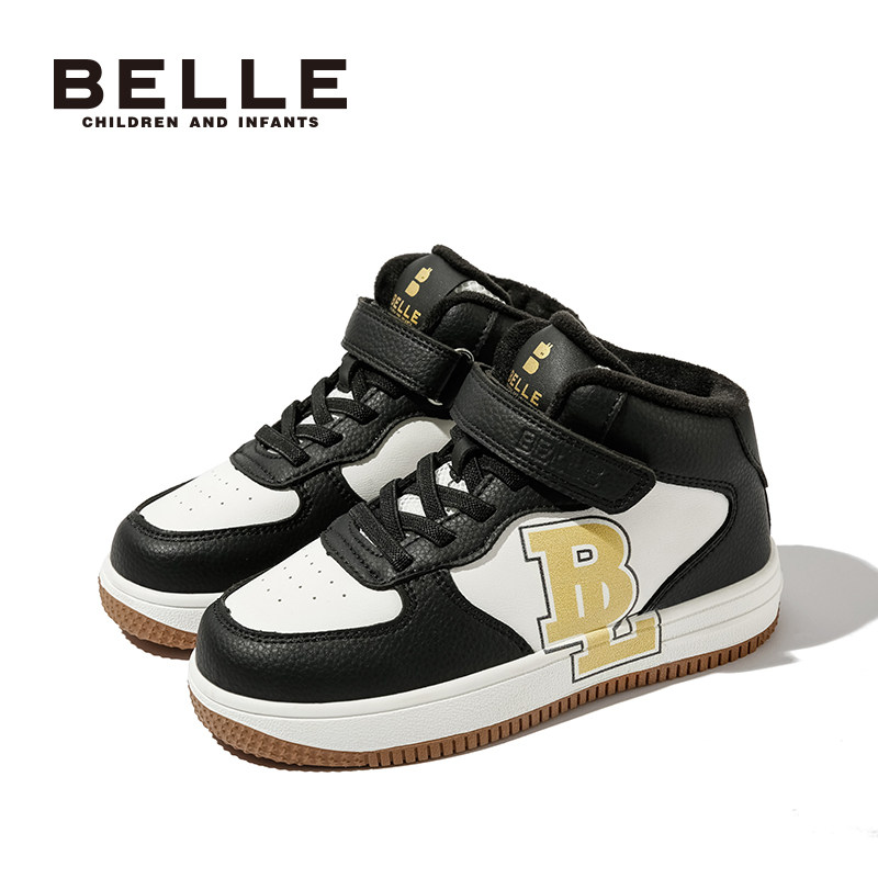📚 百丽童鞋女童高帮板鞋秋冬加绒保暖复古休闲鞋男童软底防滑运动鞋