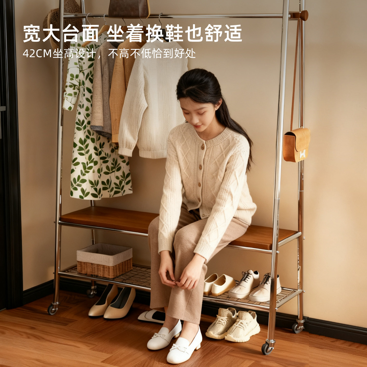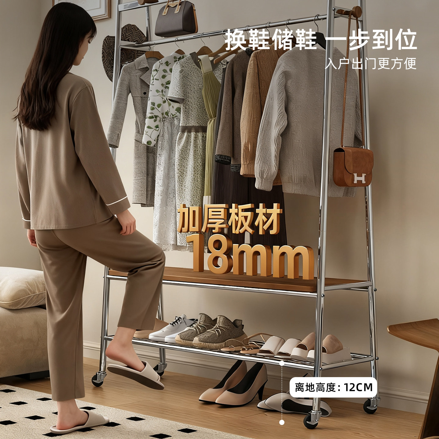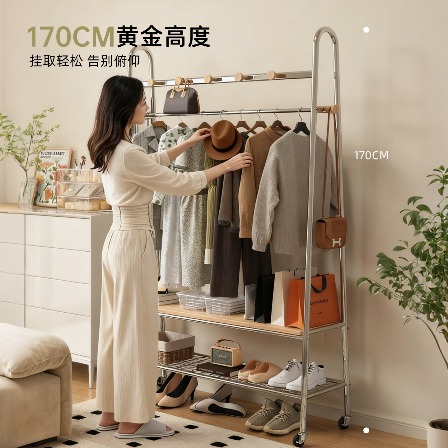 📚 2025新款挂衣架实木落地挂衣架可移动卧室置物架小型家用衣帽架子