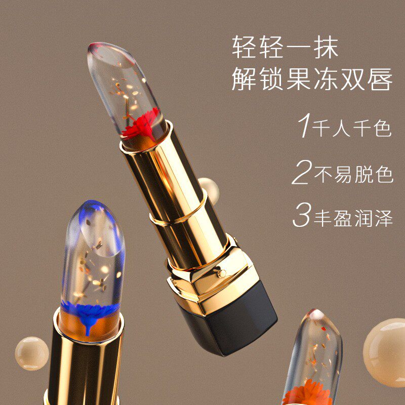 📚 鲜花果冻变色口红女持久不易沾杯不易掉色温变润唇膏隐形唇纹水光