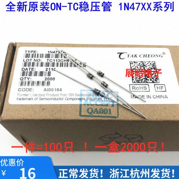 📚 TC德昌ON原装 稳压管 1N4742A 1N4742 1W 12V 金封 (100只价)
