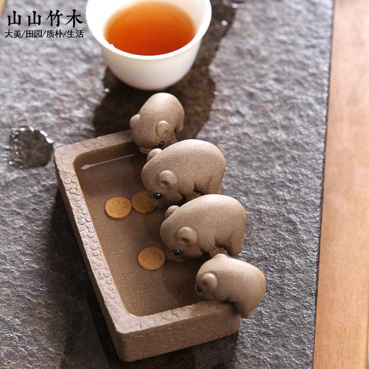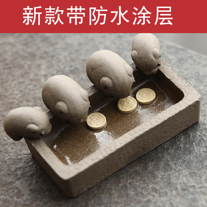 📚 茶宠可养紫砂茶宠物摆件变色四小猪喝水段泥丰衣足食宜兴精品茶玩
