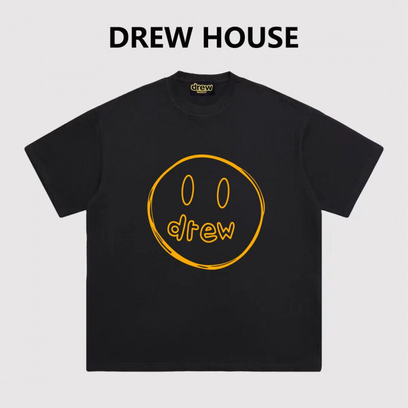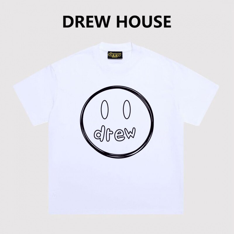 📚 重磅Drew手绘笑脸印花纯棉短袖男高街美式休闲宽松情侣夏季T恤Tee