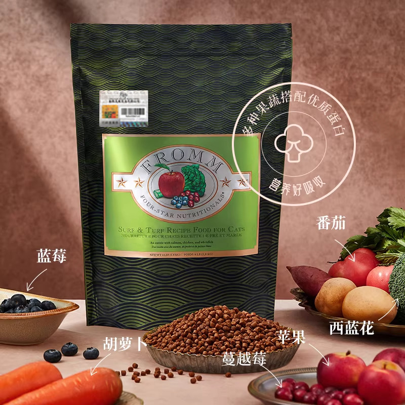 📚 petinn 进口福摩绿福摩猫粮无谷三文鱼鸡鸭肉蔬菜成幼全猫粮10磅