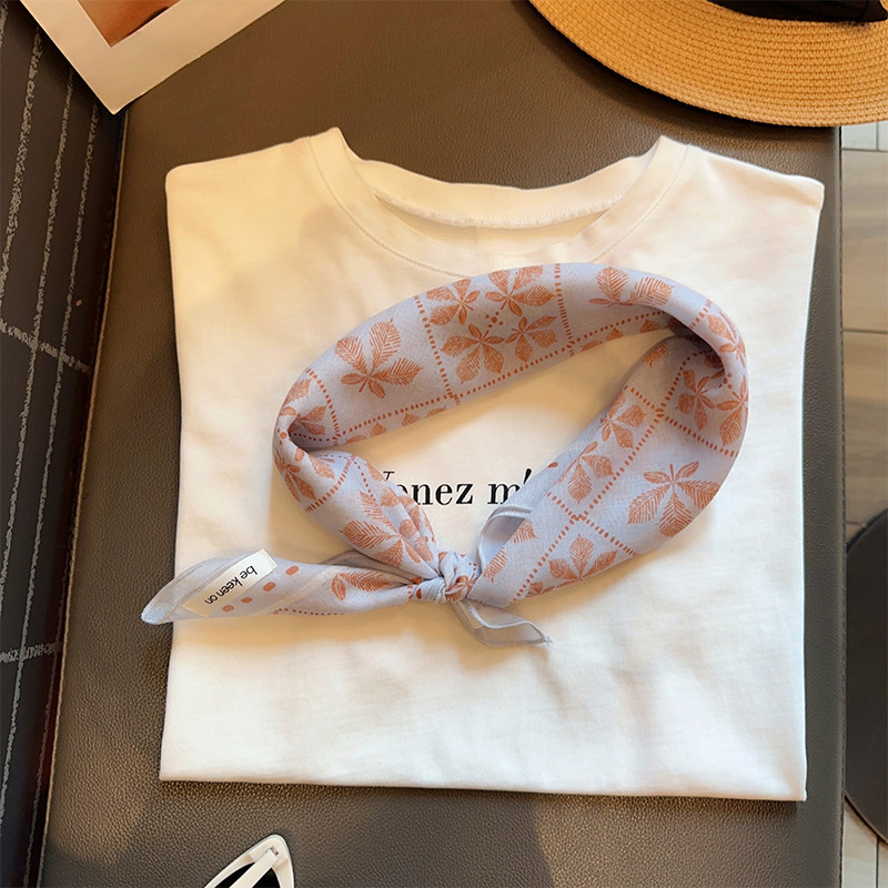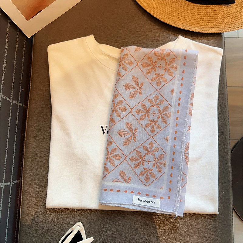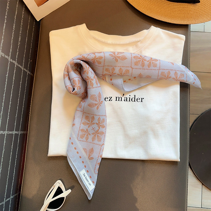 📚 田园风植物印花棉麻轻薄小方巾系腰装饰丝巾女2026春夏护颈领巾薄