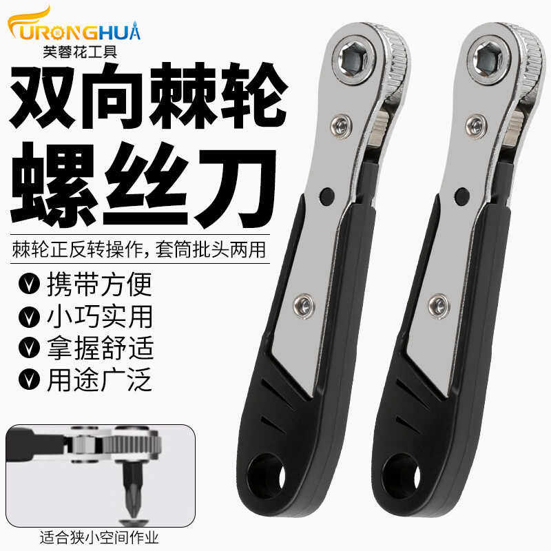 📚 两头可用 新品黑色双向棘轮迷你螺丝刀 狭小空间省力胶柄把手