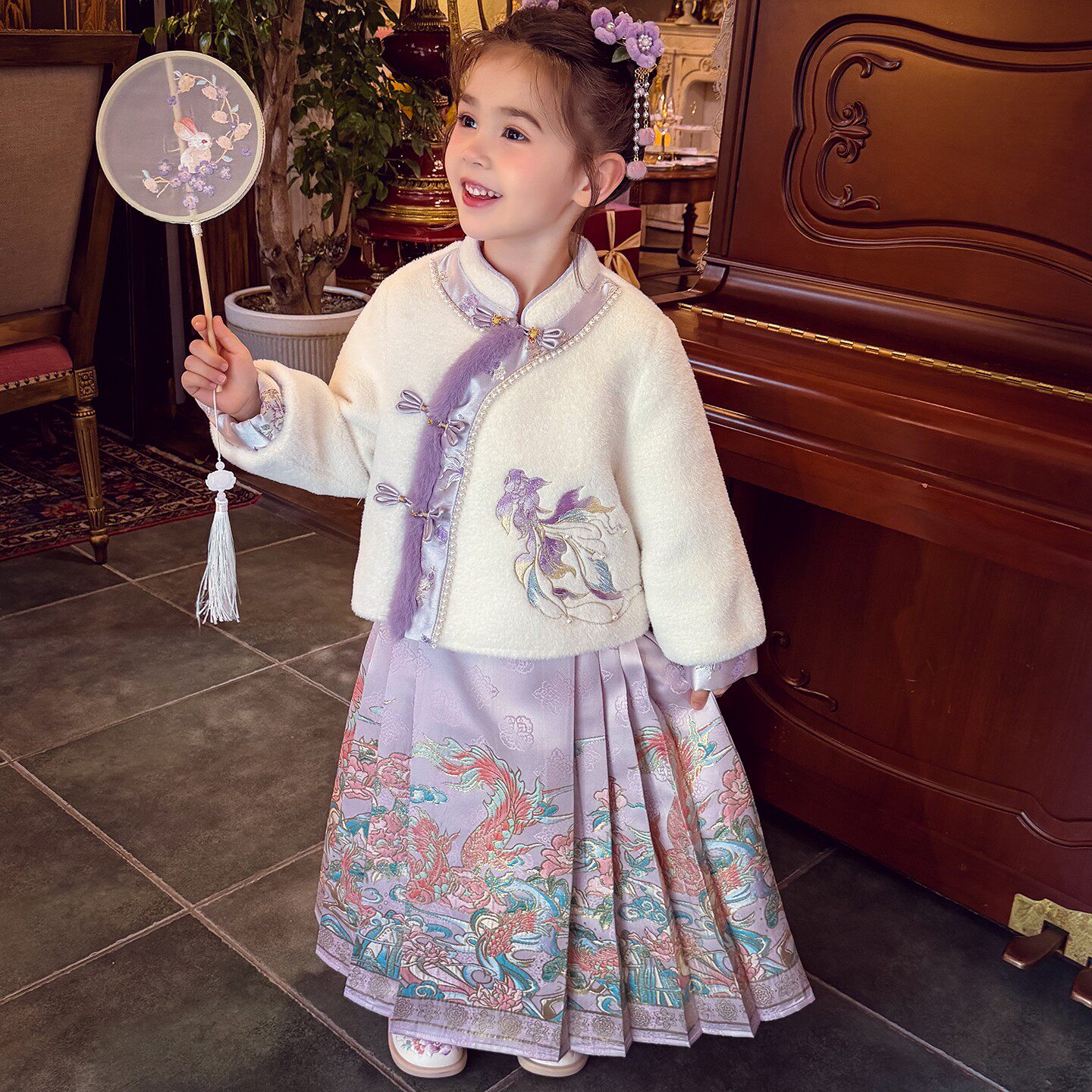 📚 女童马面裙套装冬装2025新款儿童明制汉服夹棉外套半身裙两件套裙