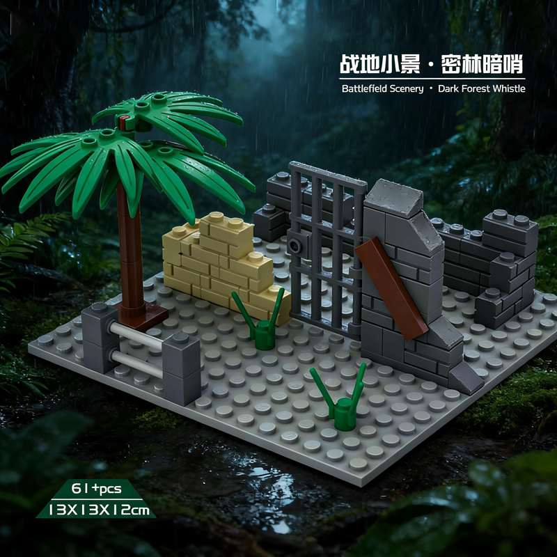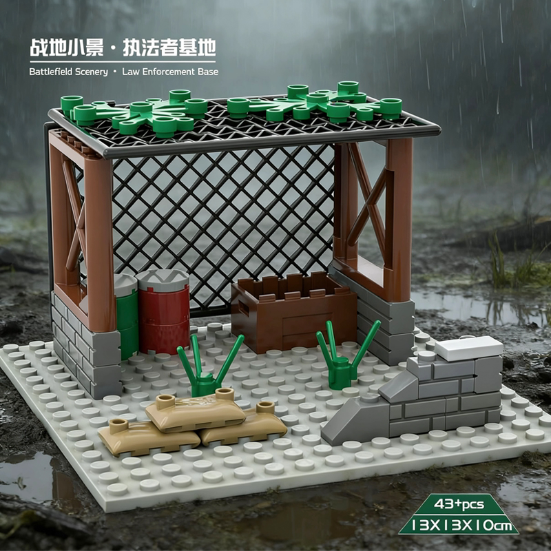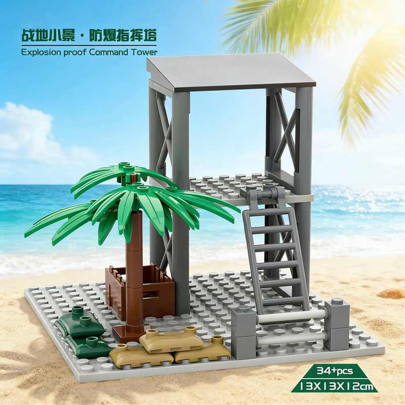 📚 军事总部大基地攻守平台营地密林哨塔哨岗阻击瞭望台拼装积木场景