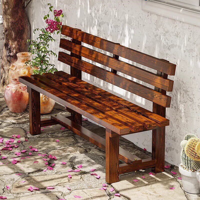 📚 户外公园庭院露天阳台休闲全实木座椅带靠背长条凳子室外防腐防水