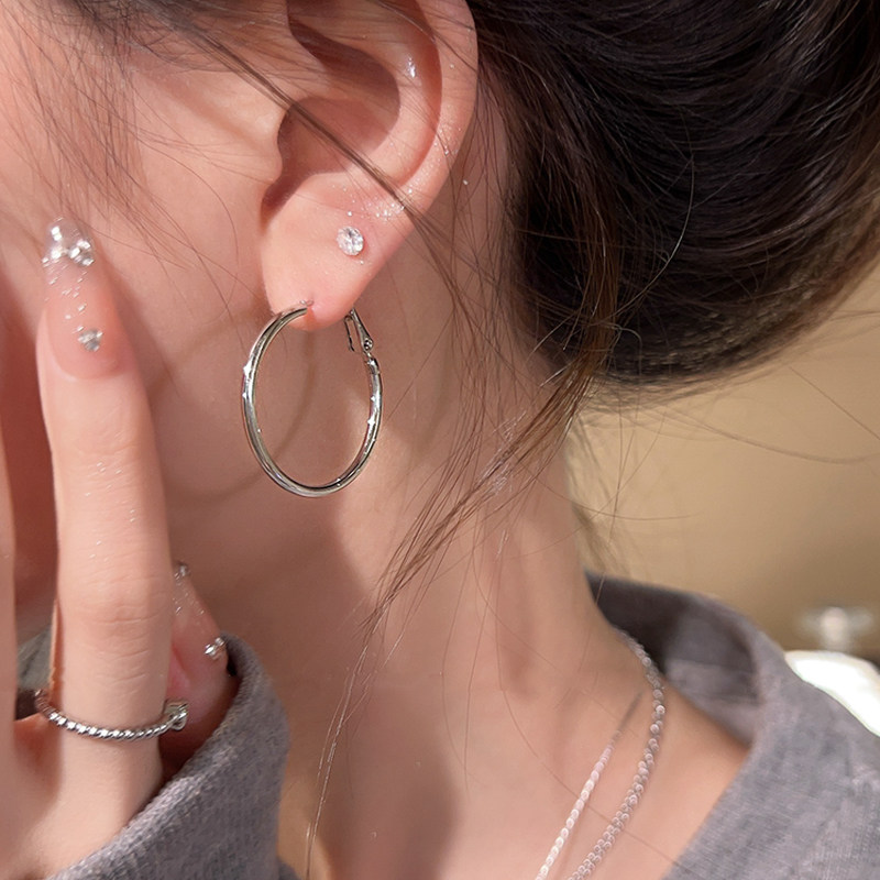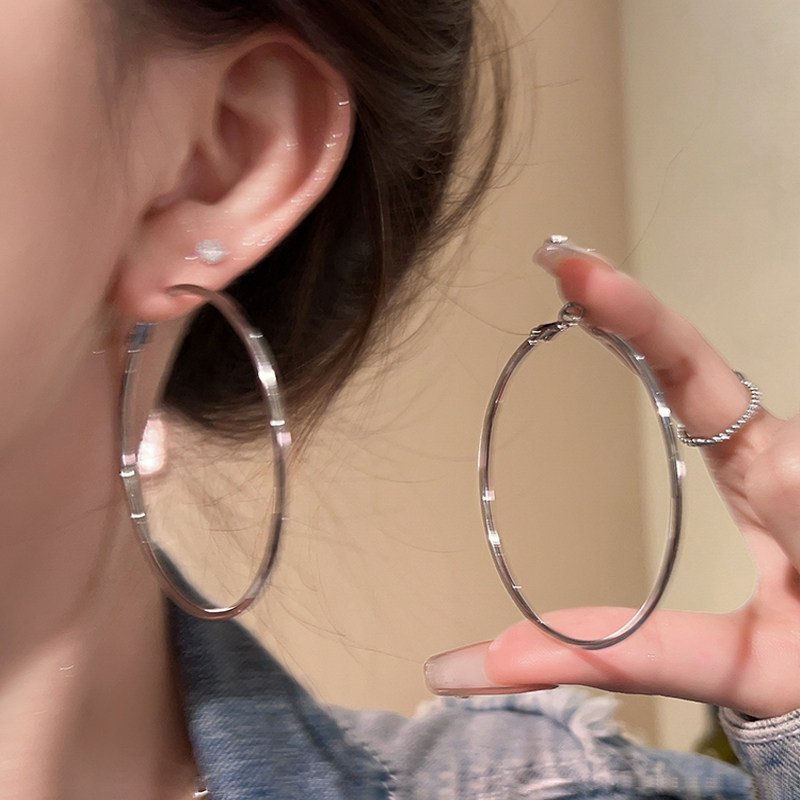 📚 2025年新款爆款素圈耳环简约高级感夸张耳饰纯银耳钉大耳圈显脸小