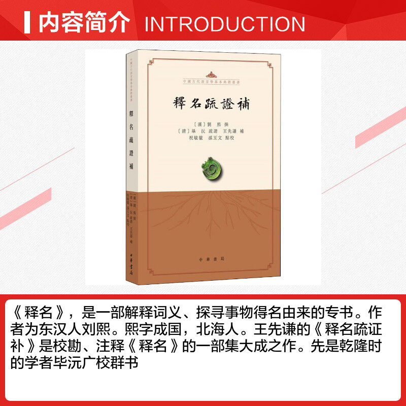 📚 释名疏证补 [汉]刘熙,[清]毕沅疏,[清]王先谦 等 语言文字文学 新华书店正版图书籍 中华书局