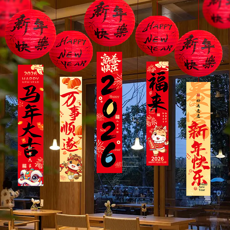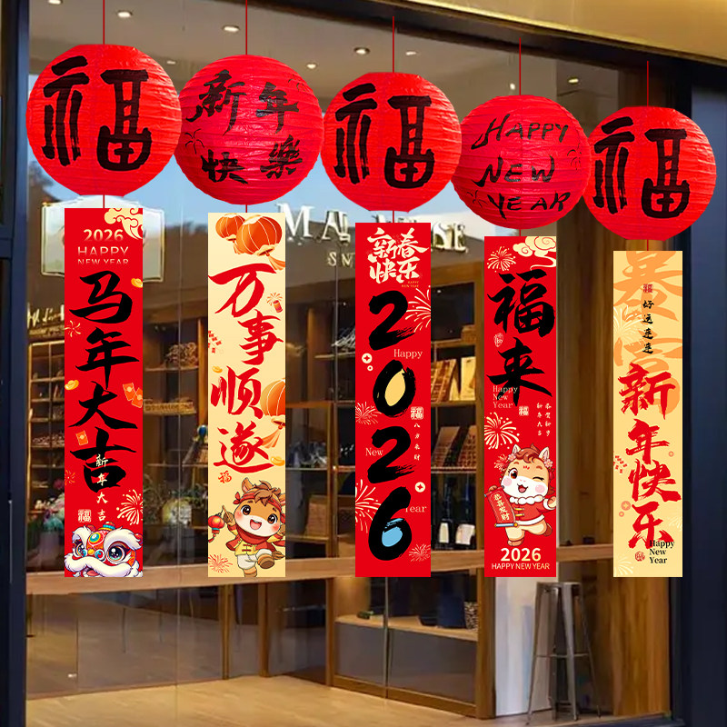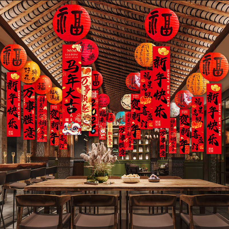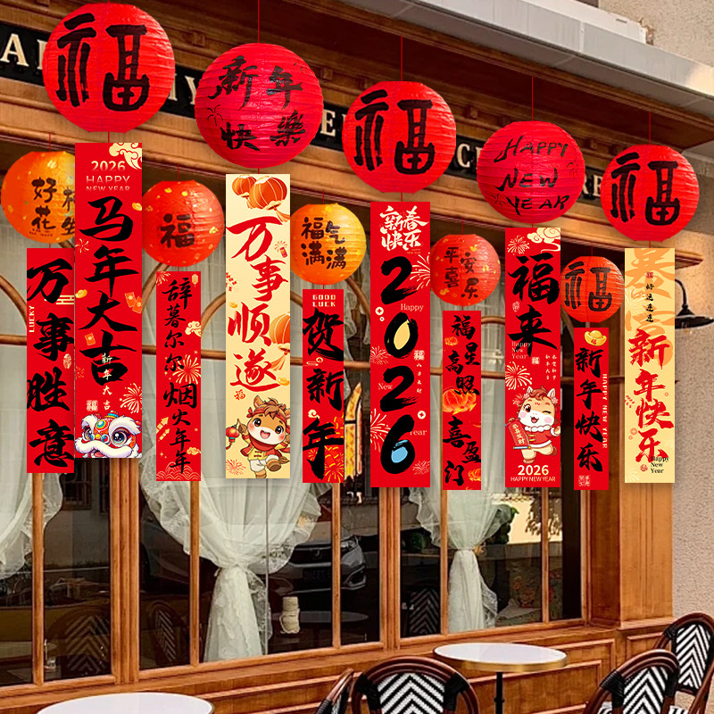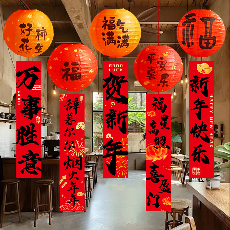 📚 新年装饰灯笼挂饰条幅吊饰商场店铺橱窗大厅年会春节氛围场景布置