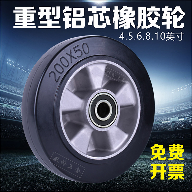 📚 双铃手推车静音轮铝芯橡胶带轴重型实心4/5/6/8/10英寸滚轮万向轮