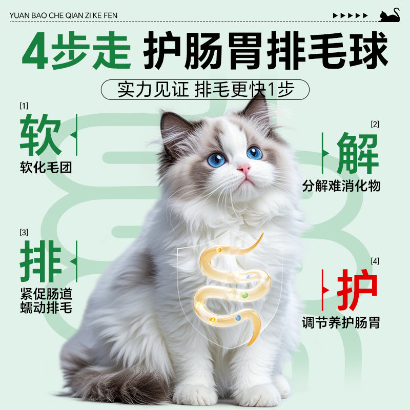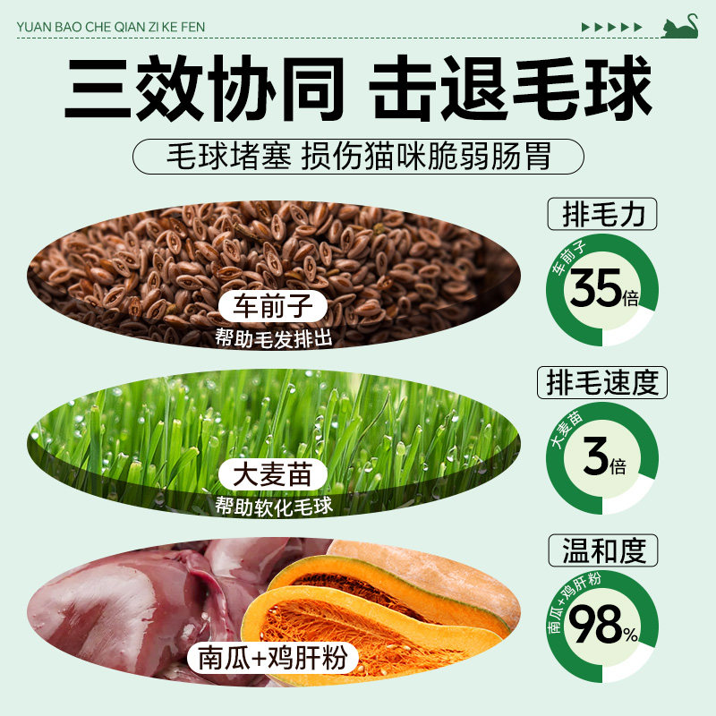 📚 洋车前子壳粉猫咪化毛圆苞车前子壳粉膳食纤维粉猫猫排毛猫用混合